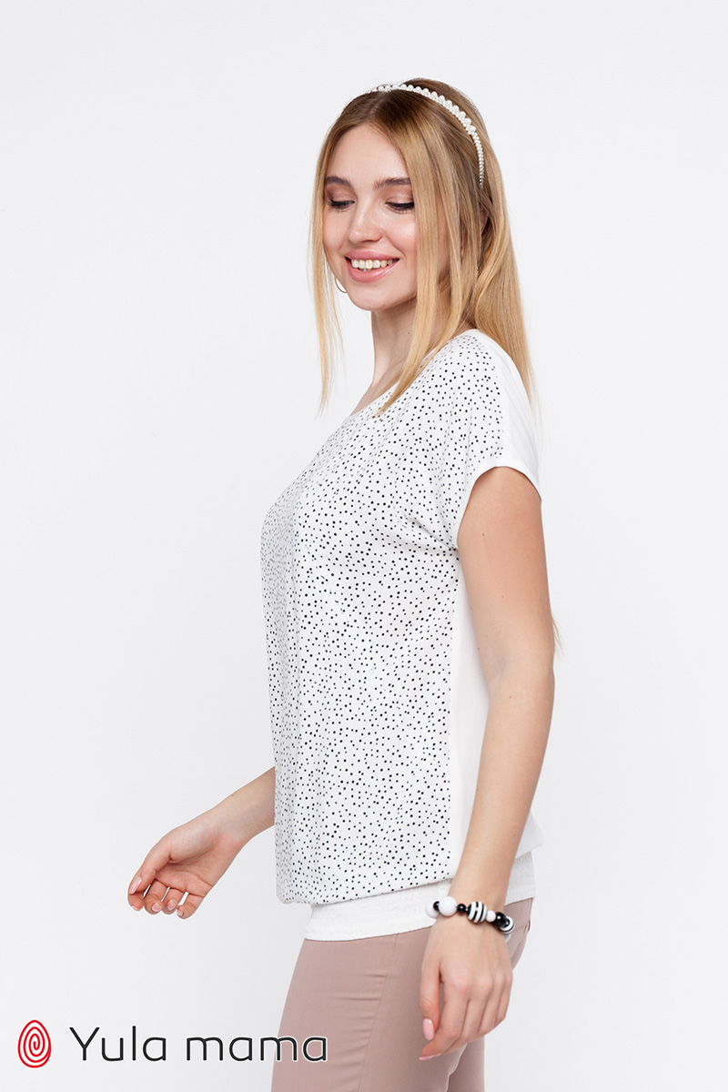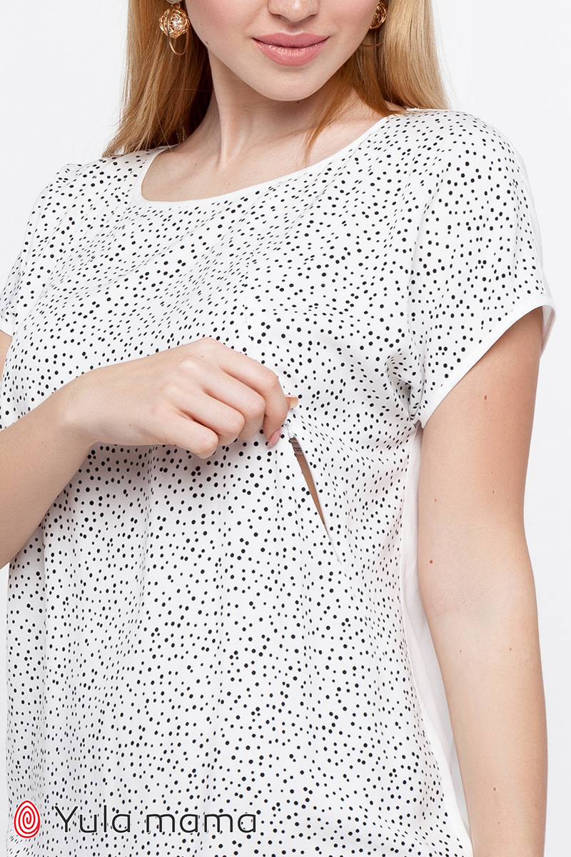 Блузка оверсайз для беременных и кормящих из комбинации однотонного и принтованного штапеля.