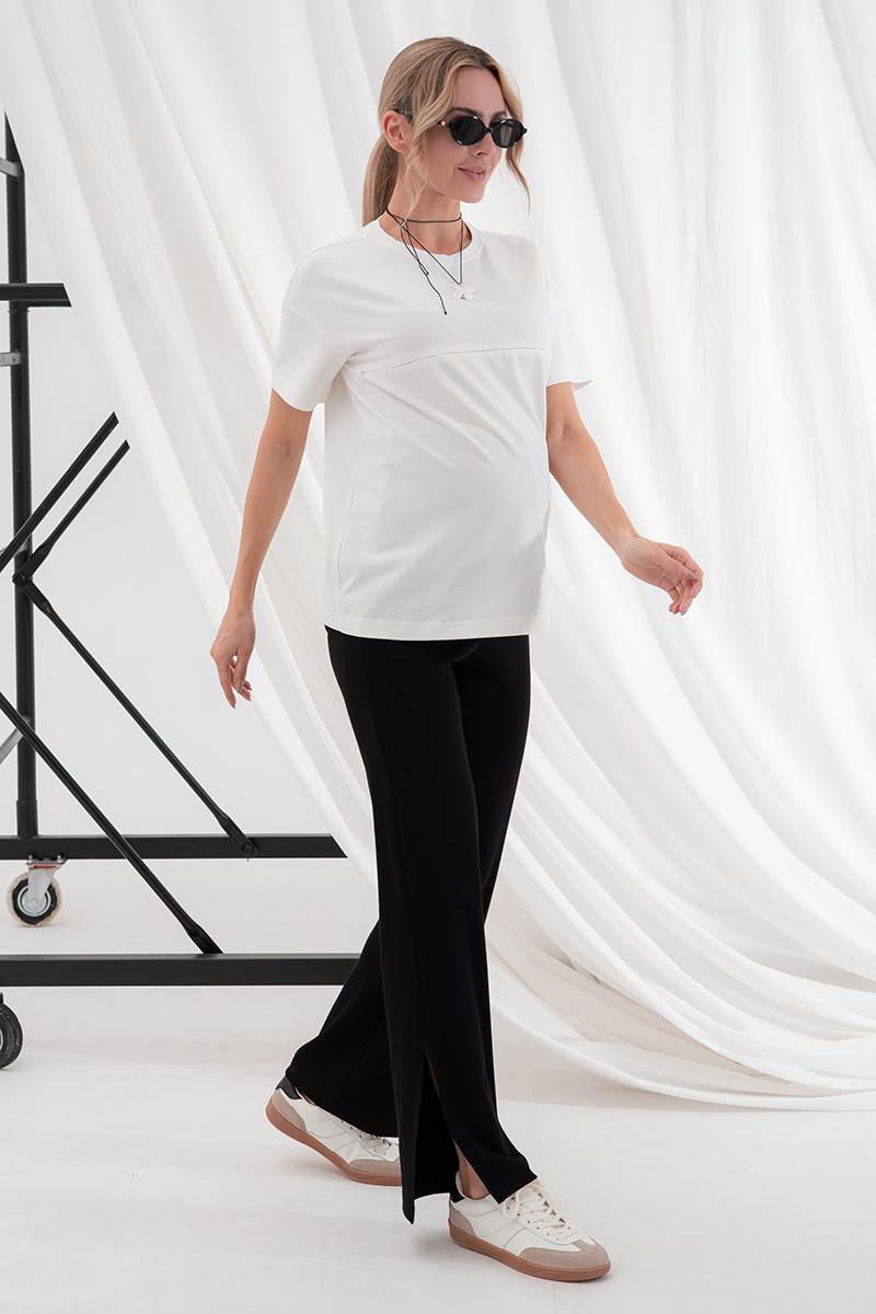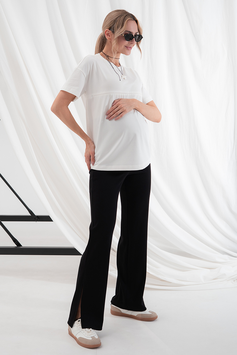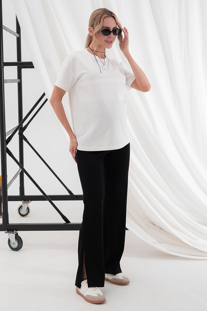 Прямі штани з розрізами для вагітних із трикотажу в рубчик.