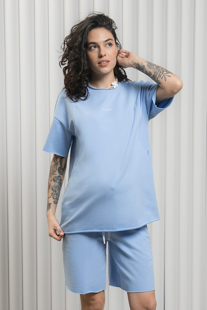Трендовий бавовняний костюм з футболки з шортами для вагітних та годуючих.