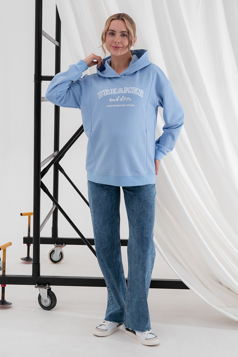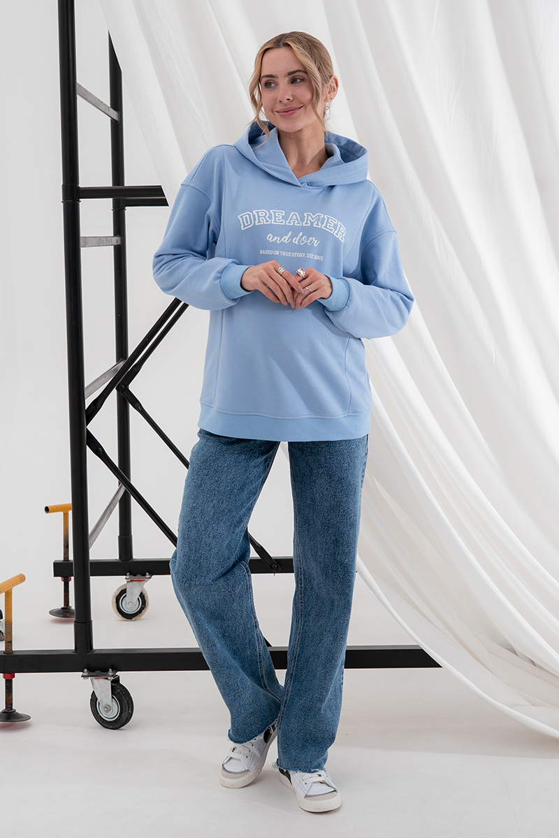 Широкі джинси для вагітних із високою спинкою та відкритим зрізом.