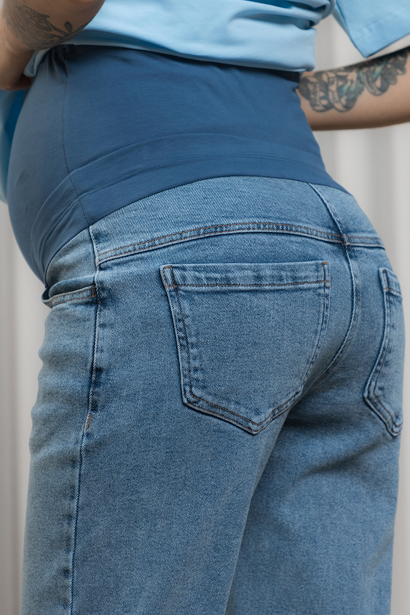 Тип пояса - комбінований: низький пояс під животик з 2-ма перфорованими резинками + високий бавовняний трикотажний пояс з перфорованою гумкою, дозволяють регулювати об'єм пояса під різний термін вагітності та носити цю модель після (попередньо прибравши високий пояс).