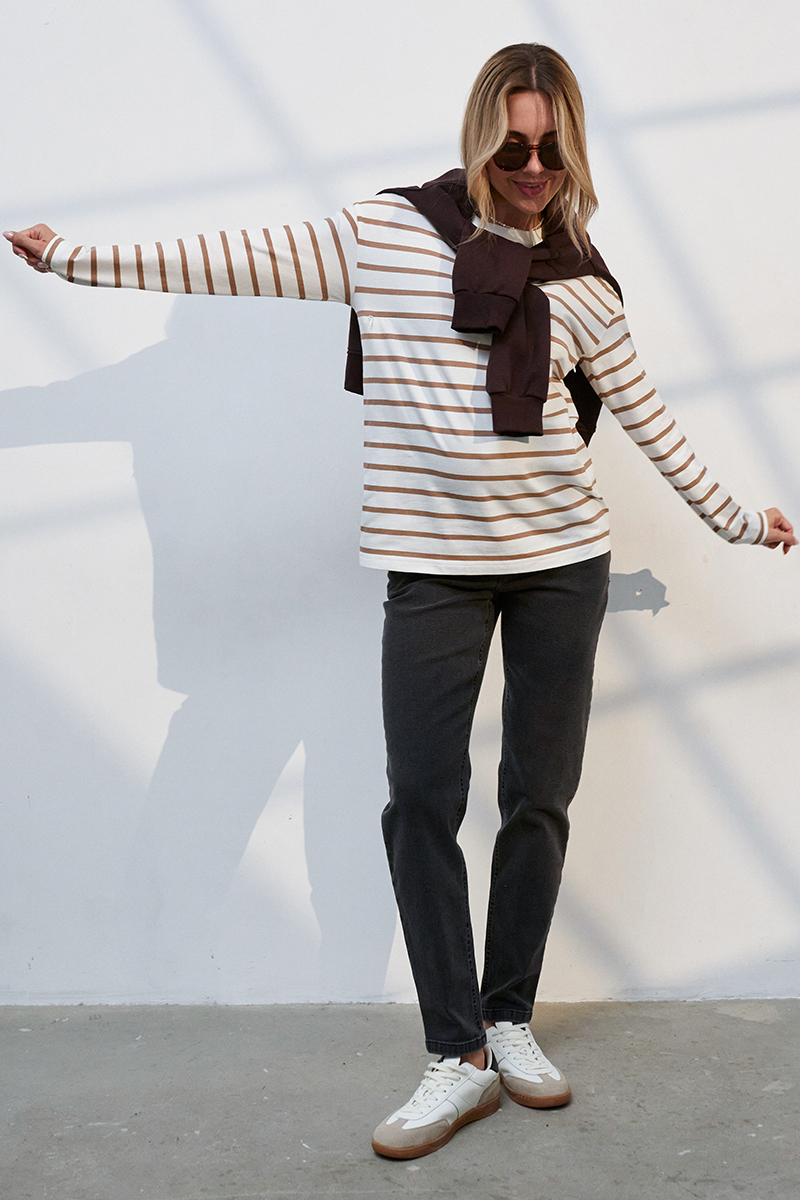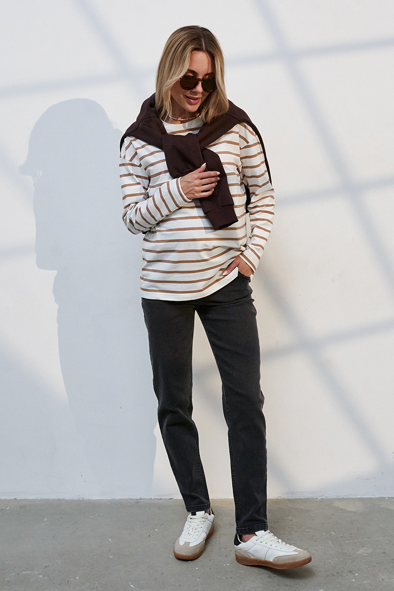 Тип пояса - комбінований: низький пояс під животик з 2-ма перфорованими резинками + високий бавовняний трикотажний пояс з перфорованою гумкою, дозволяють регулювати об'єм пояса під різний термін вагітності та носити цю модель після (попередньо прибравши високий пояс).