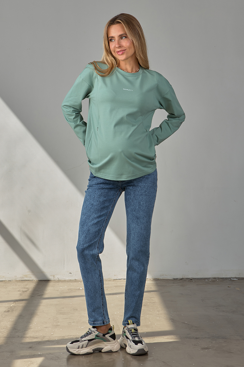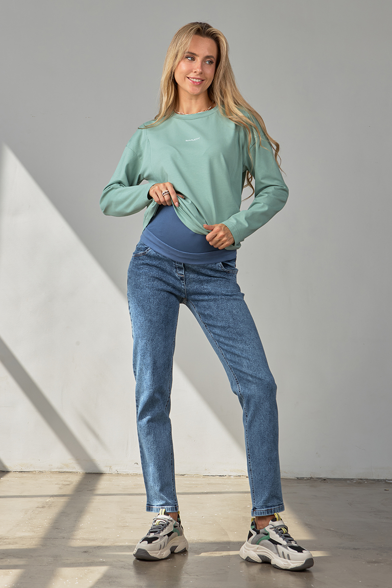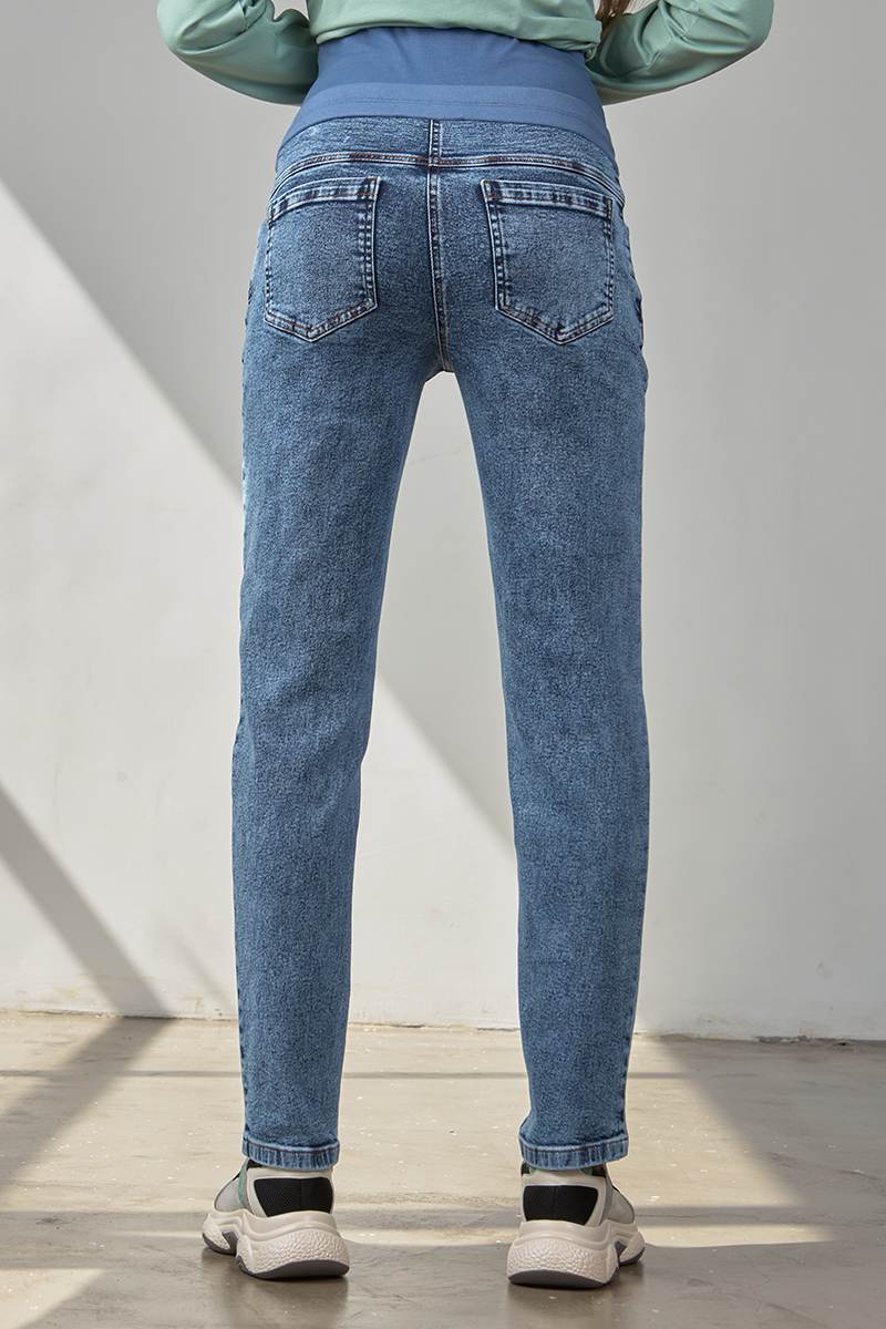 Стильні джинси Mom для вагітних зі сніжним ефектом.