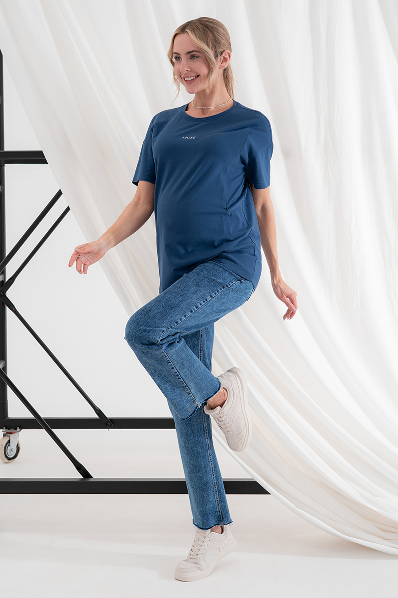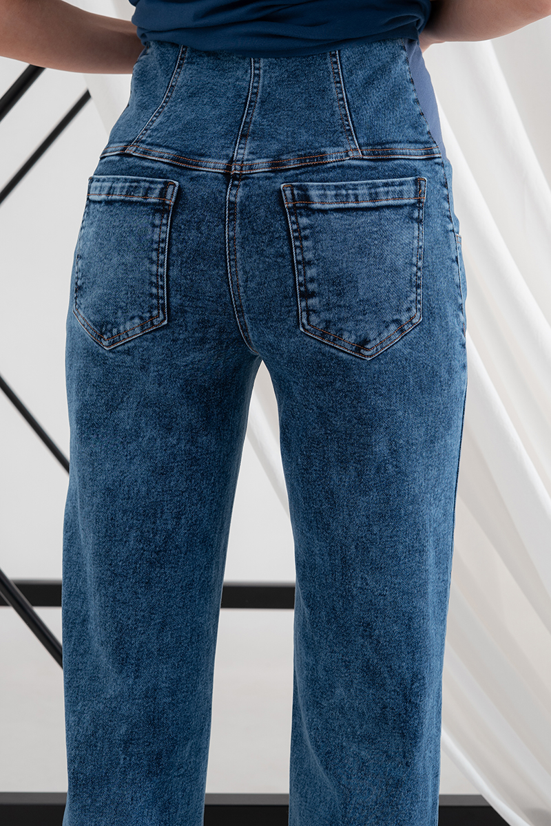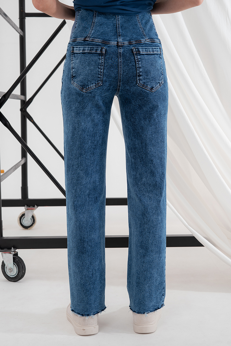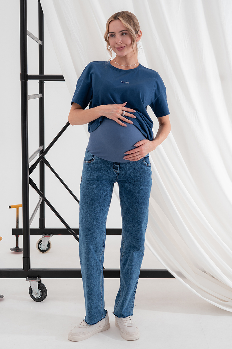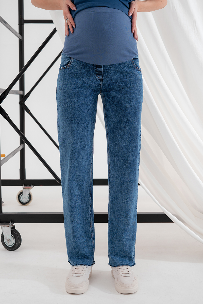 Стильні прямі джинси для вагітних із високою спинкою та непідшитим низом.