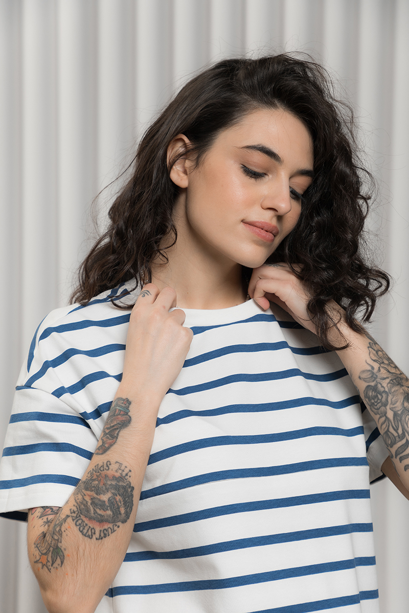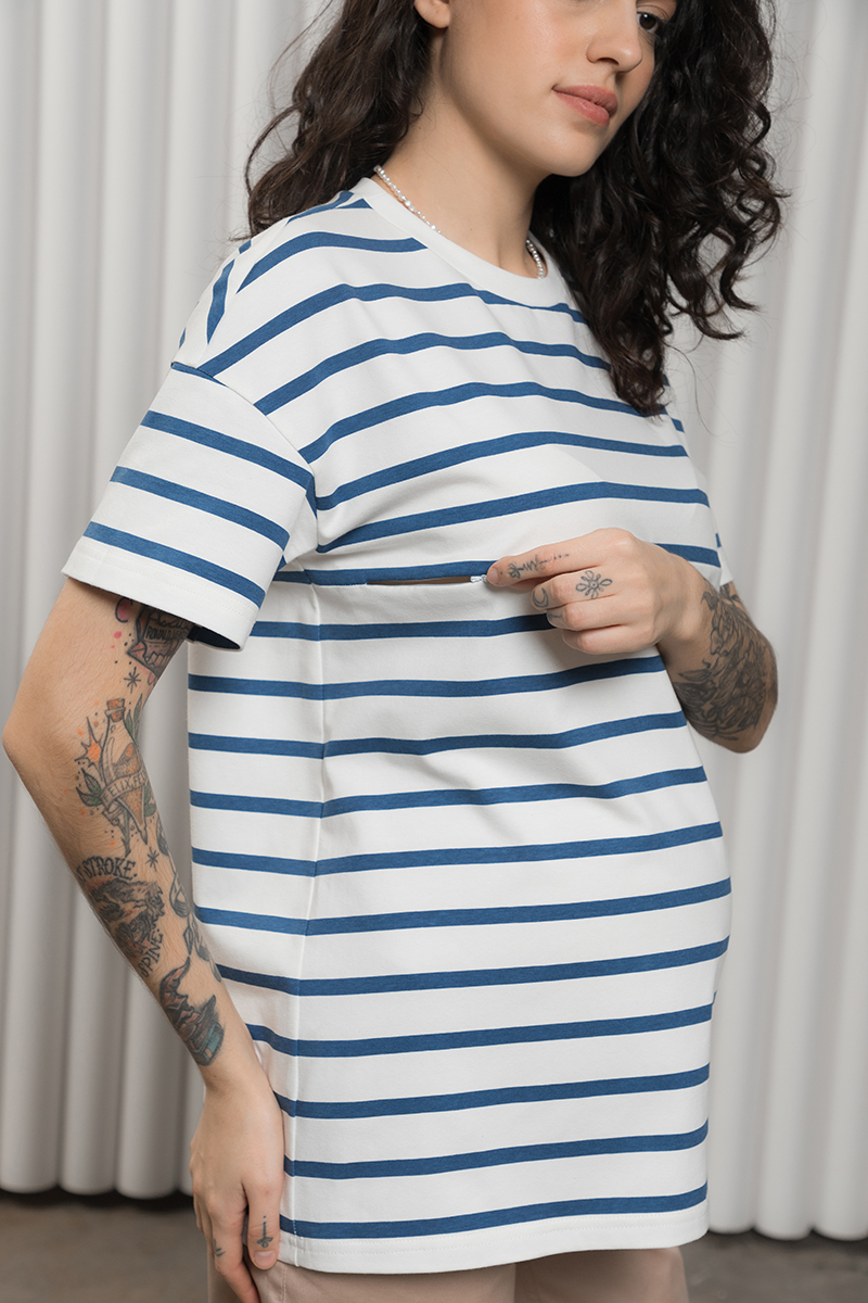 Молодіжна бавовняна футболка в смужку для вагітних та годуючих.