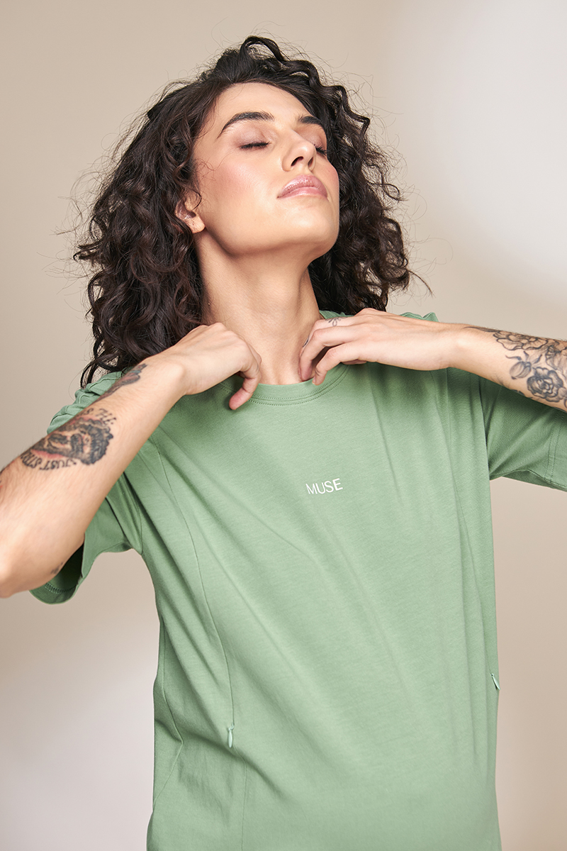 На фотографії: розмір моделі верх S, об'єм грудей 88 см, стегон 93 см, зріст 174 см.