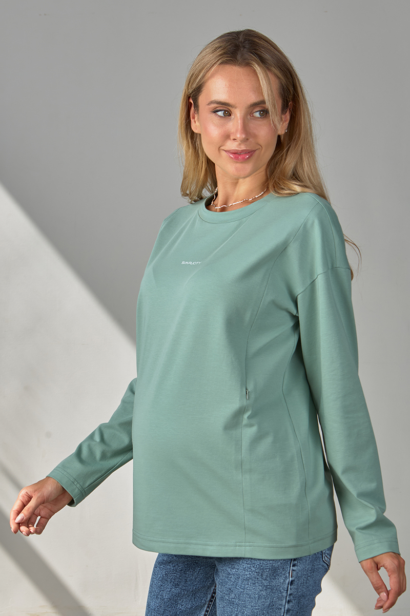 Базовий лонгслів для вагітних та годуючих із щільного бавовняного трикотажу.