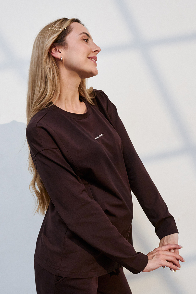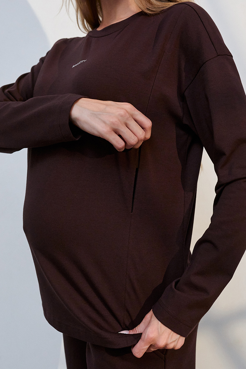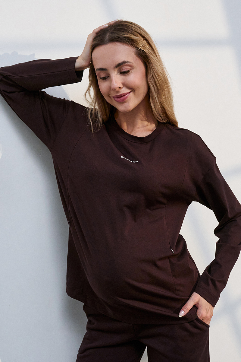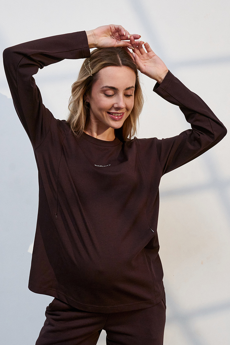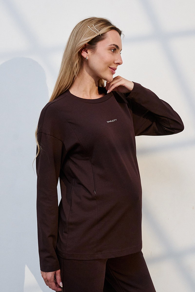 Базовий лонгслів для вагітних та годуючих із щільного бавовняного трикотажу.
