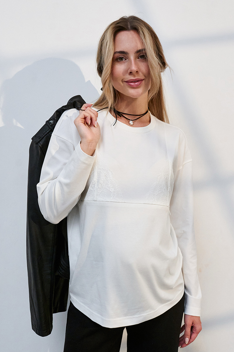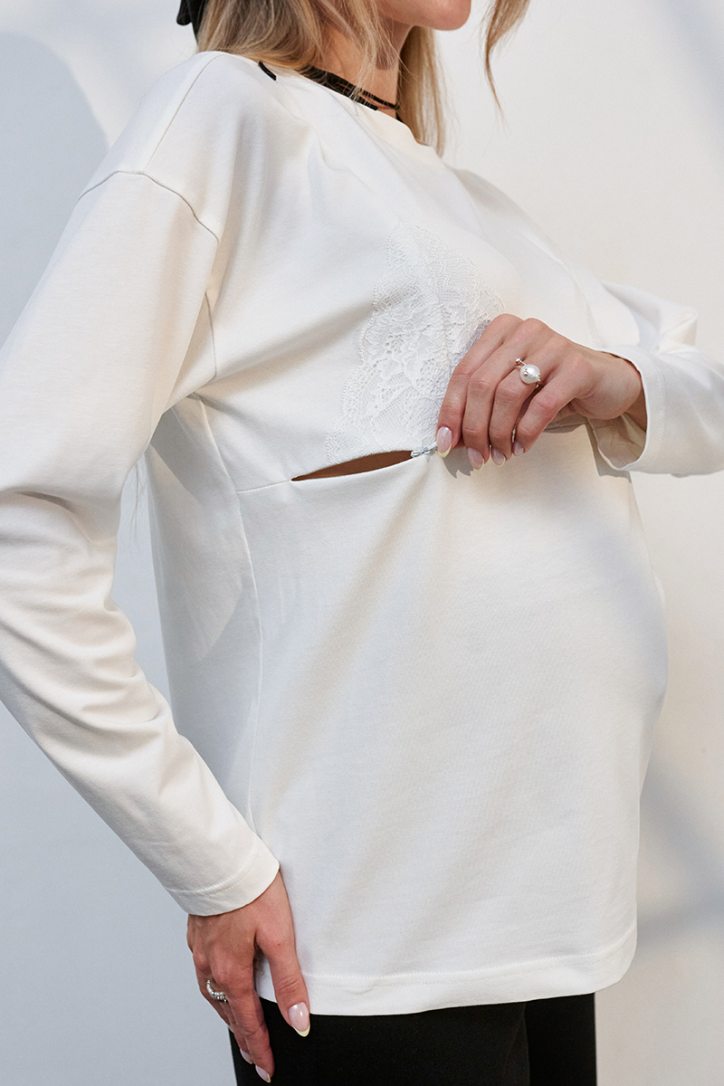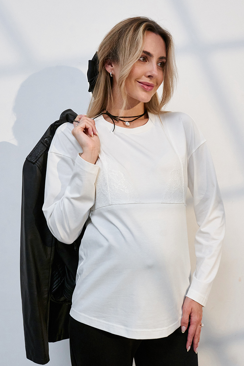 Стильний лонгслів для вагітних і годуючих у білизняному стилі.