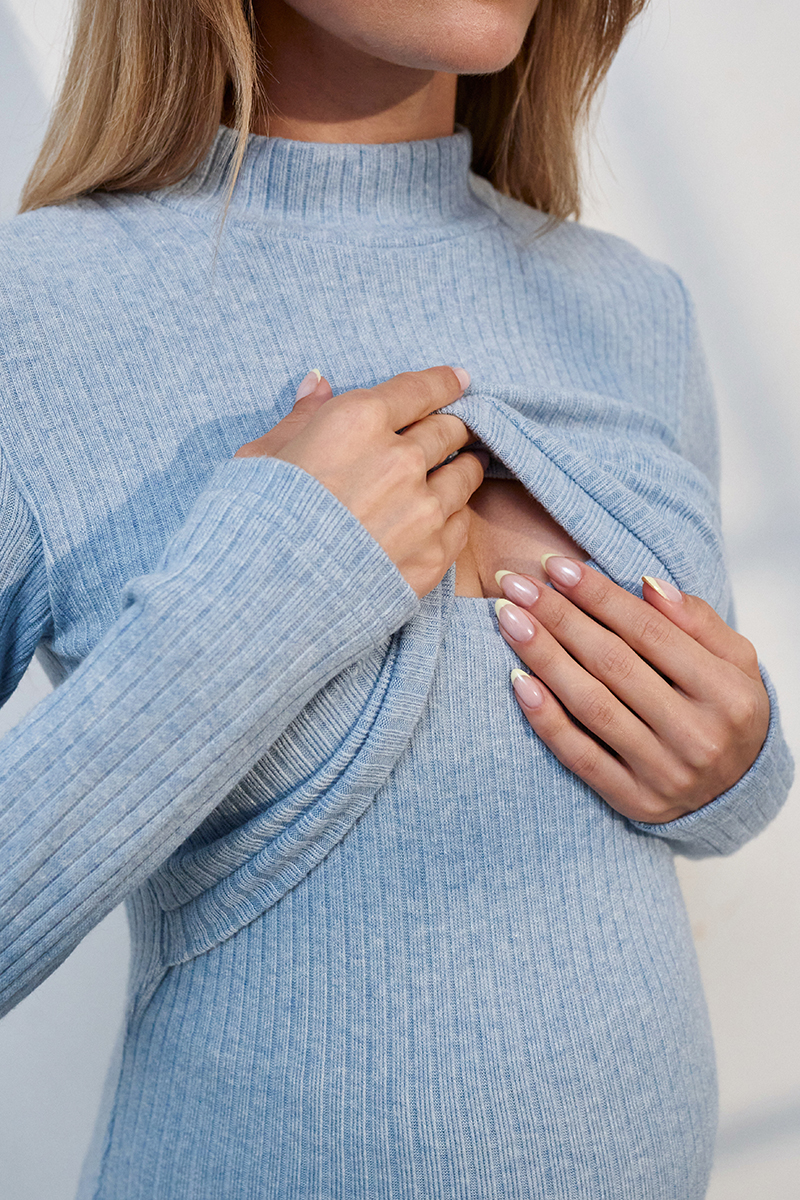 Теплий гольф для вагітних і тих, хто годує з теплого трикотажу ангора в рубчик.