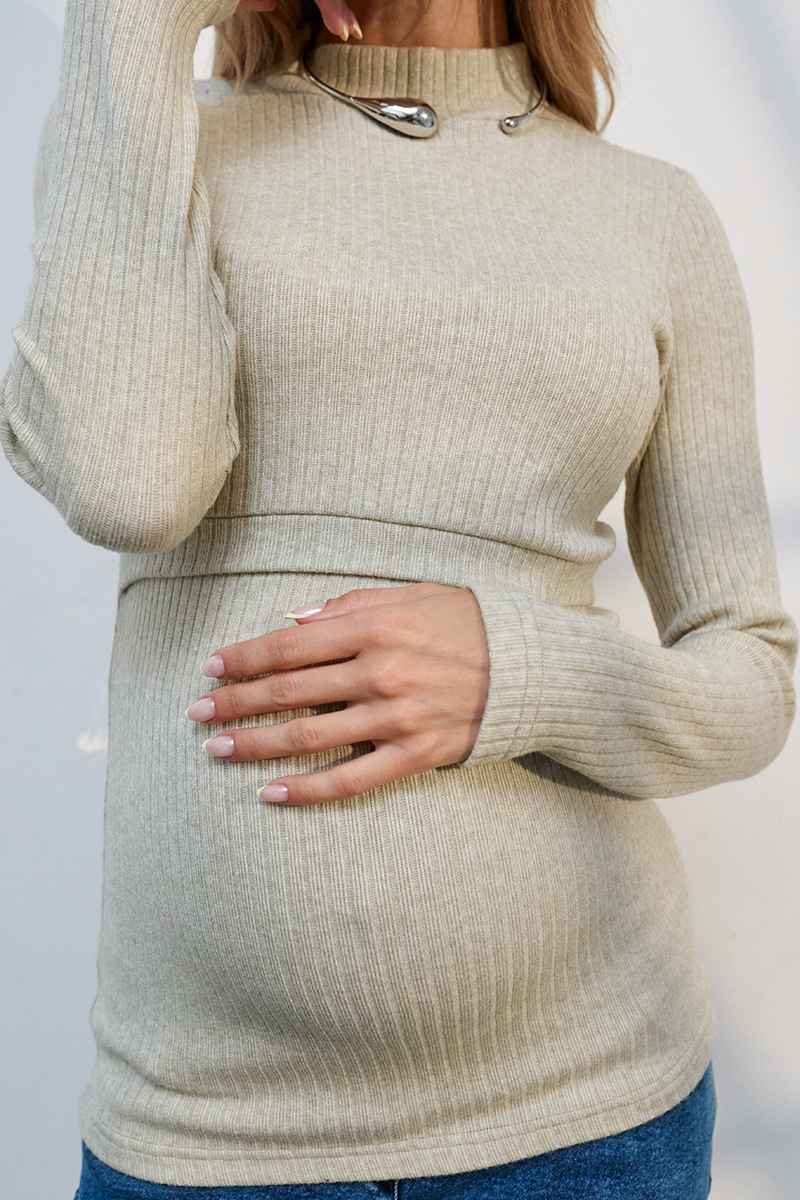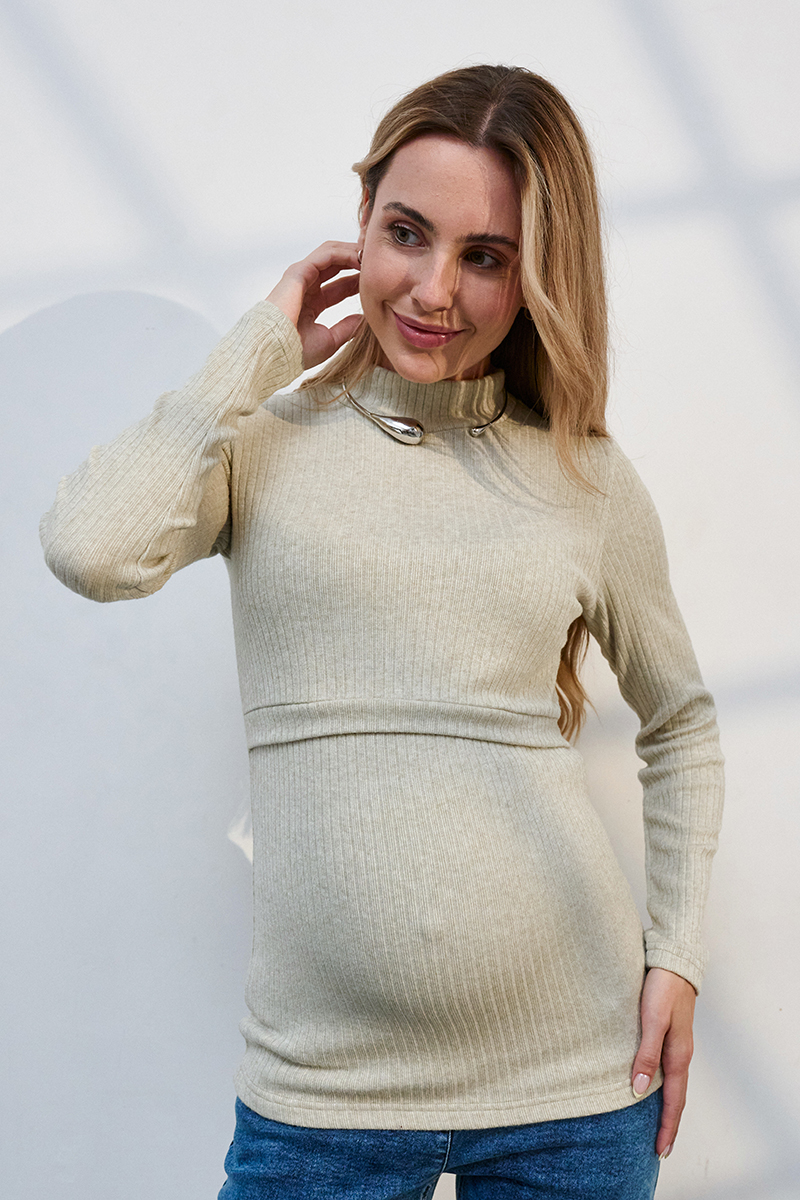 Теплий гольф для вагітних і тих, хто годує з теплого трикотажу ангора в рубчик.