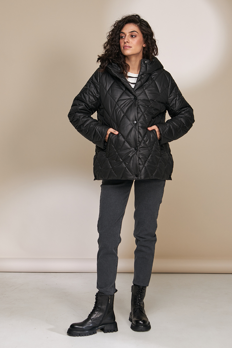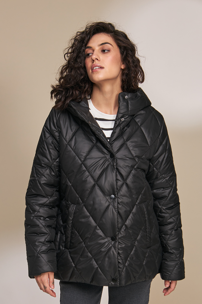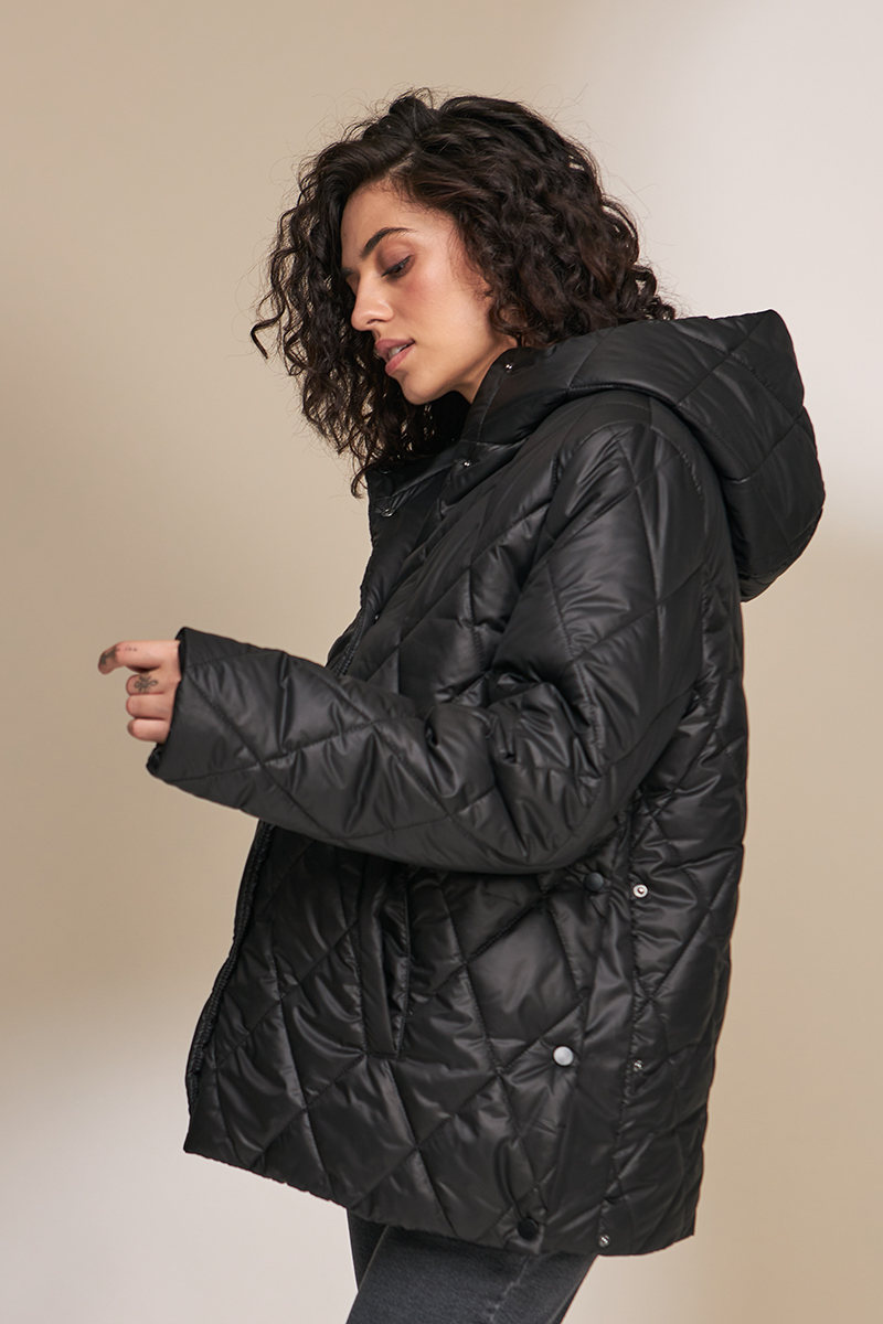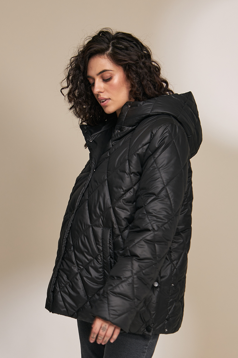 Трендова стьобана куртка на кнопках для вагітних із бічними розширювачами.