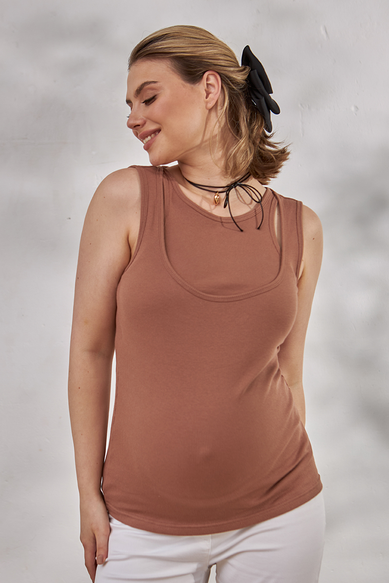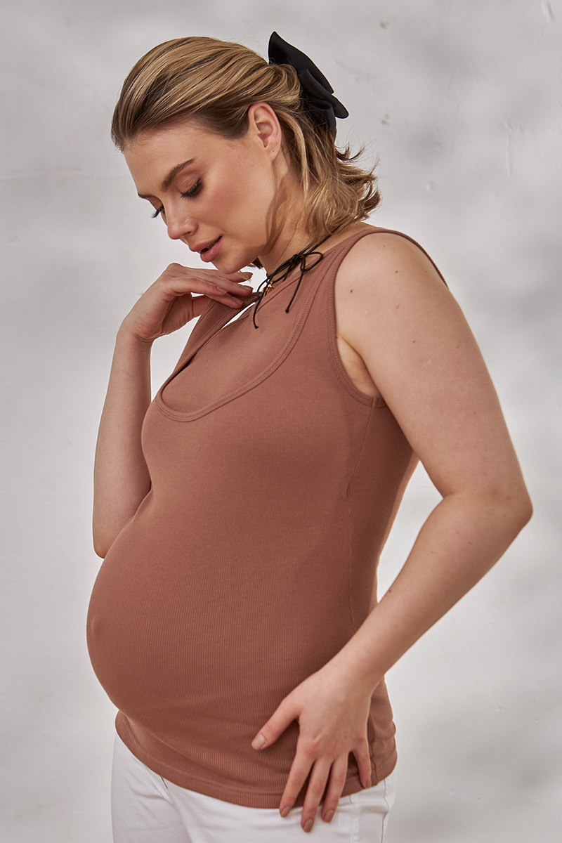 Секрет годування: глибокий виріз горловини продубльований коротким внутрішнім топом.