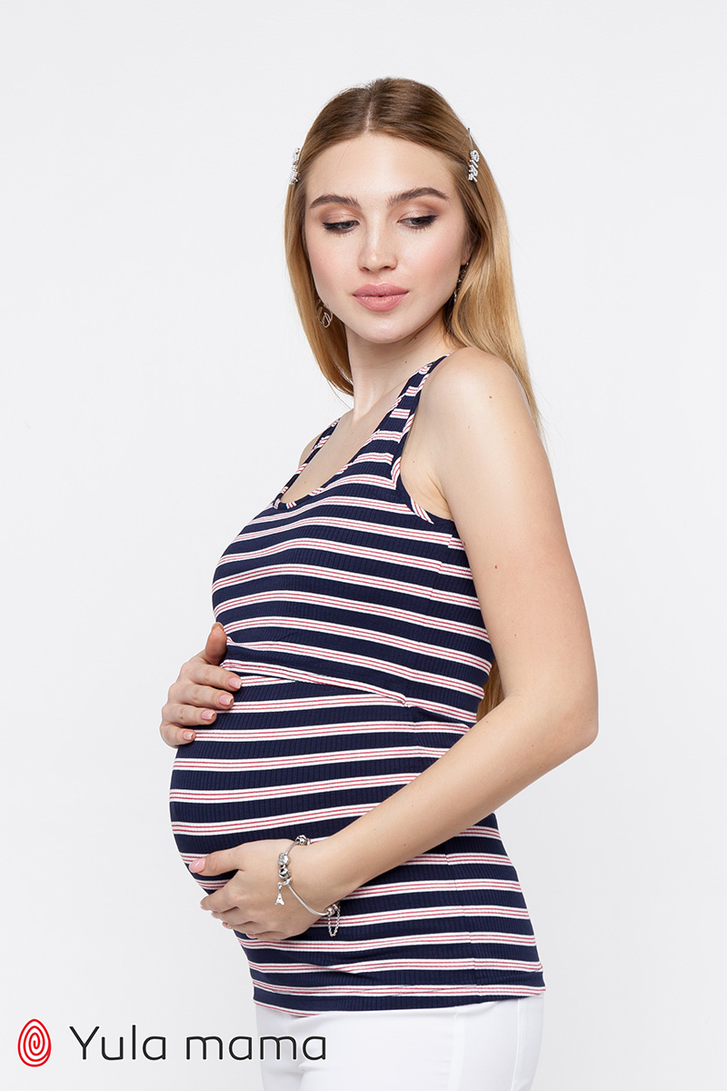 Смугаста майка для вагітних та годуючих мам із трикотажу-гумка.