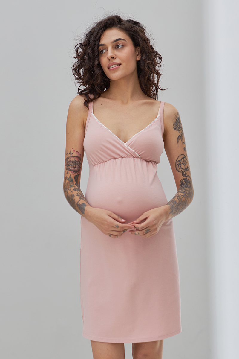 Комфортна нічна сорочка для вагітних і годуючих мам на бретелях.