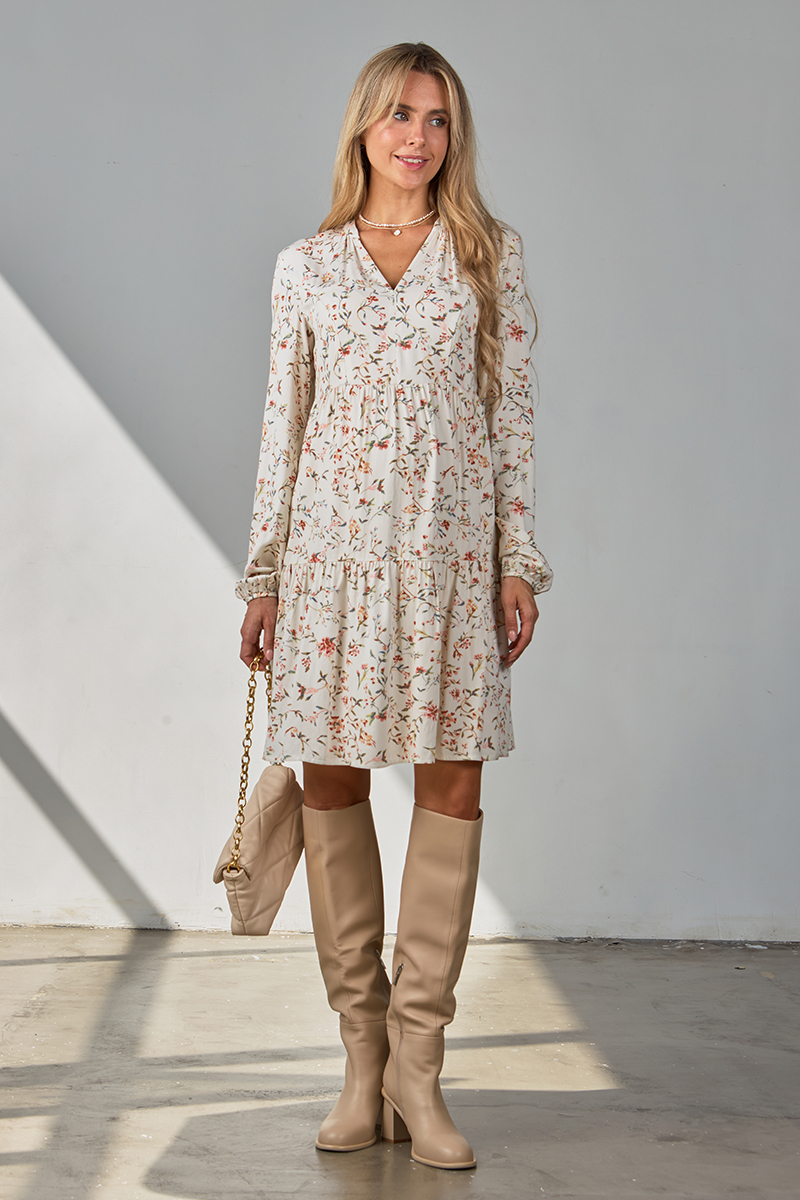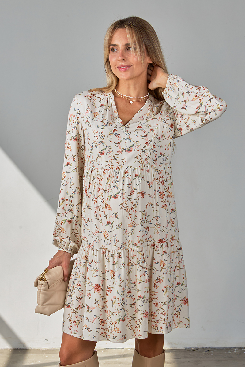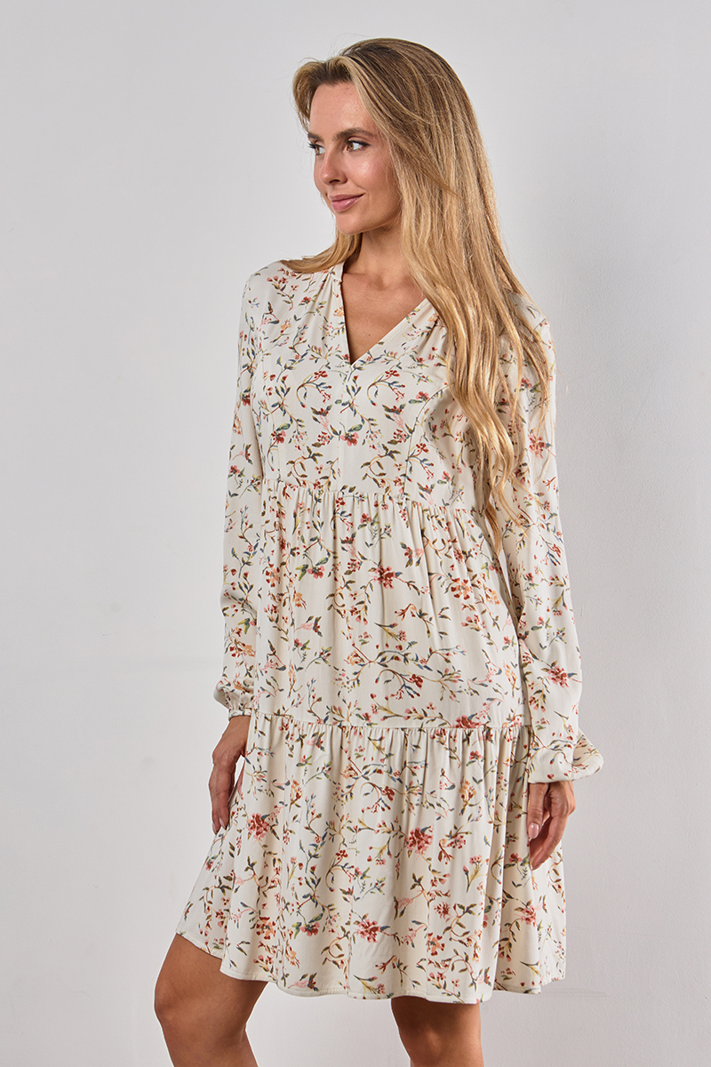 Силует: ліф із середньою свободою облягання та вільна ярусна спідниця.