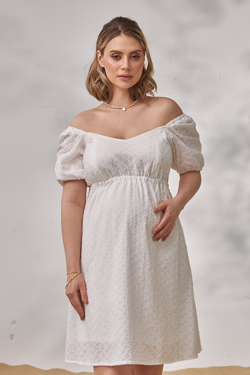 Сукня для вагітних та годуючих з акцентними рукавами-буфами.