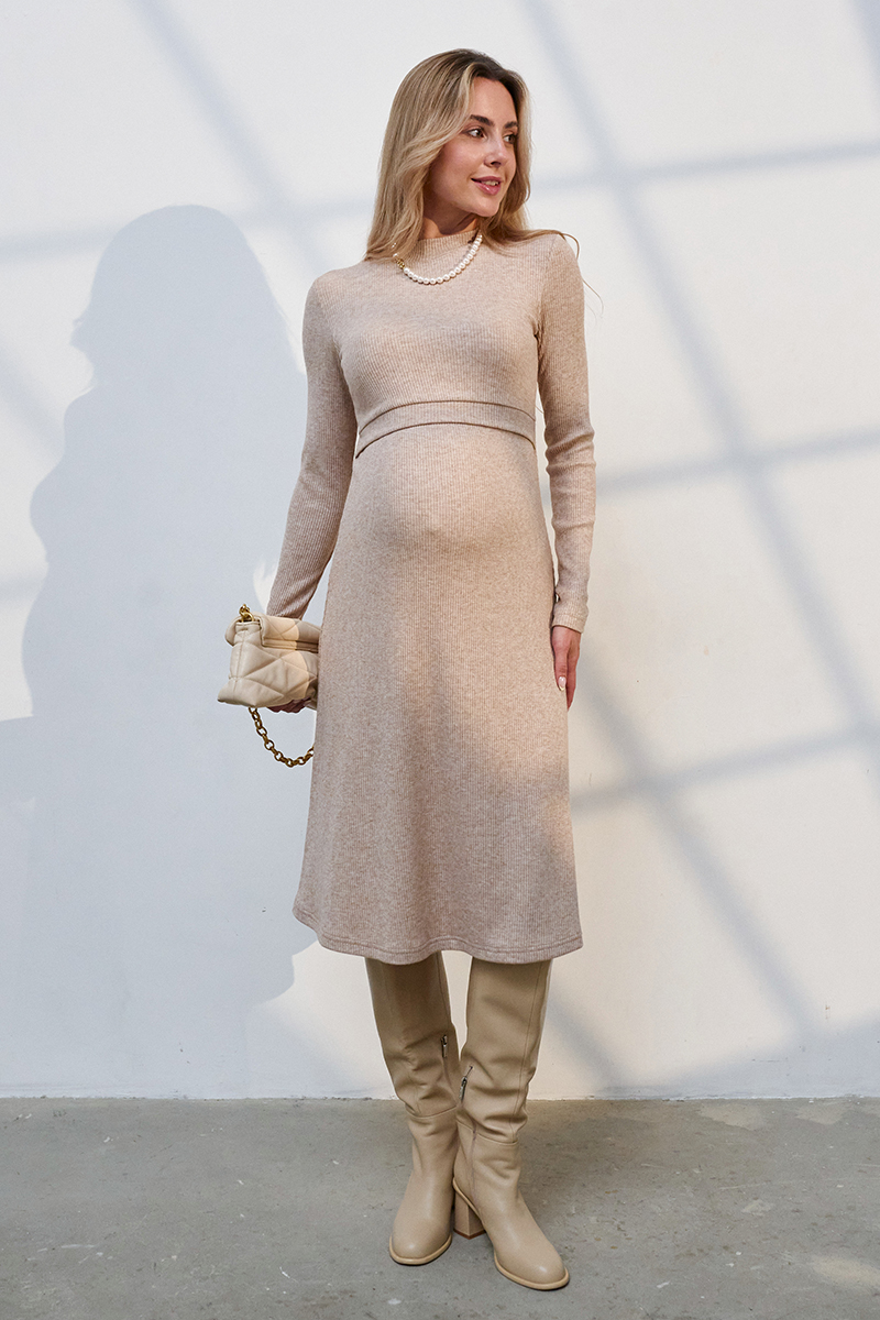 Жіночна сукня для вагітних та годуючих з теплого трикотажу в рубчик.