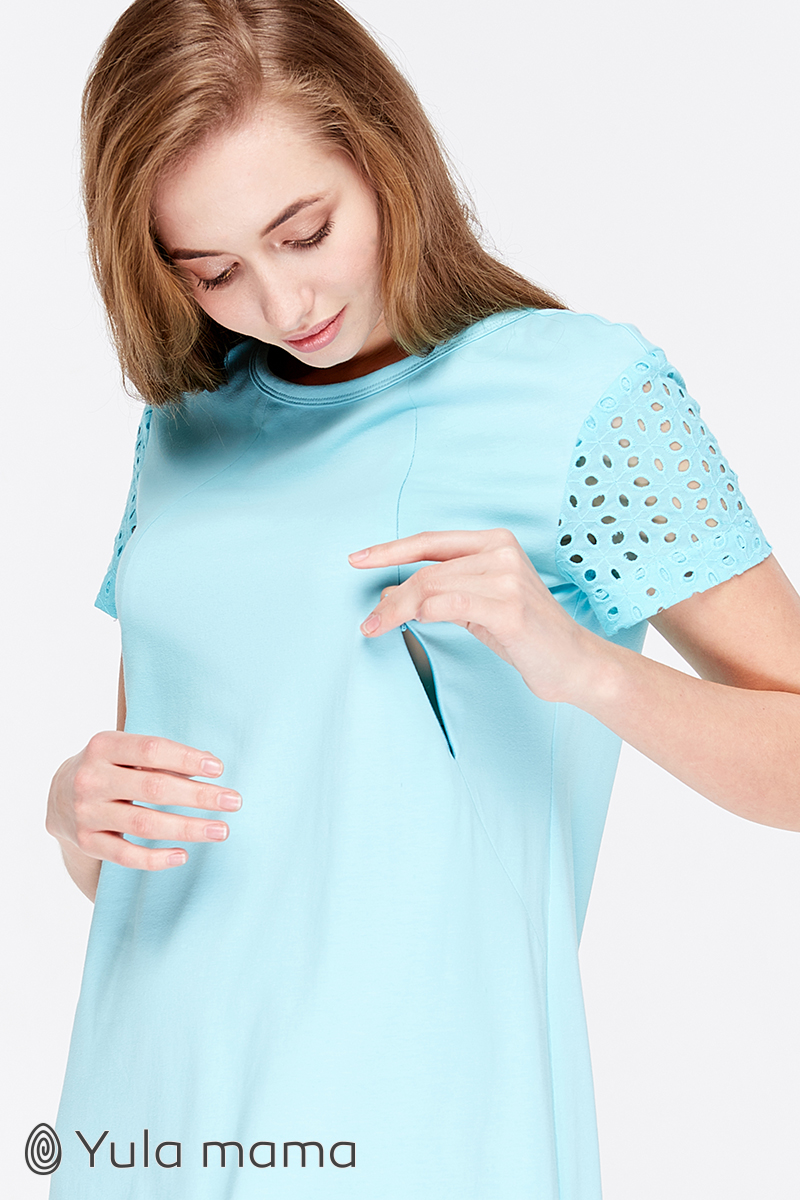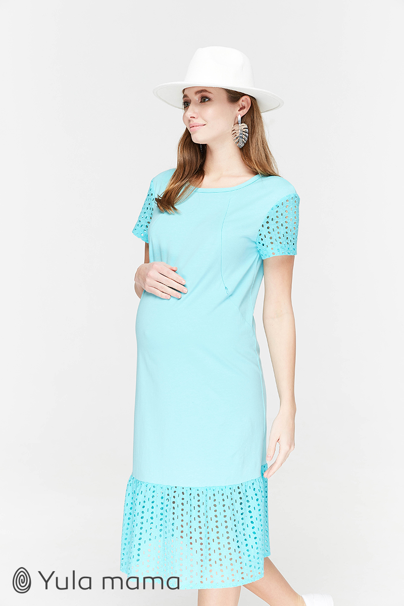 Сукня-футболка для вагітних і довжиною міді, що годують, з обробкою з бавовняного мережива.