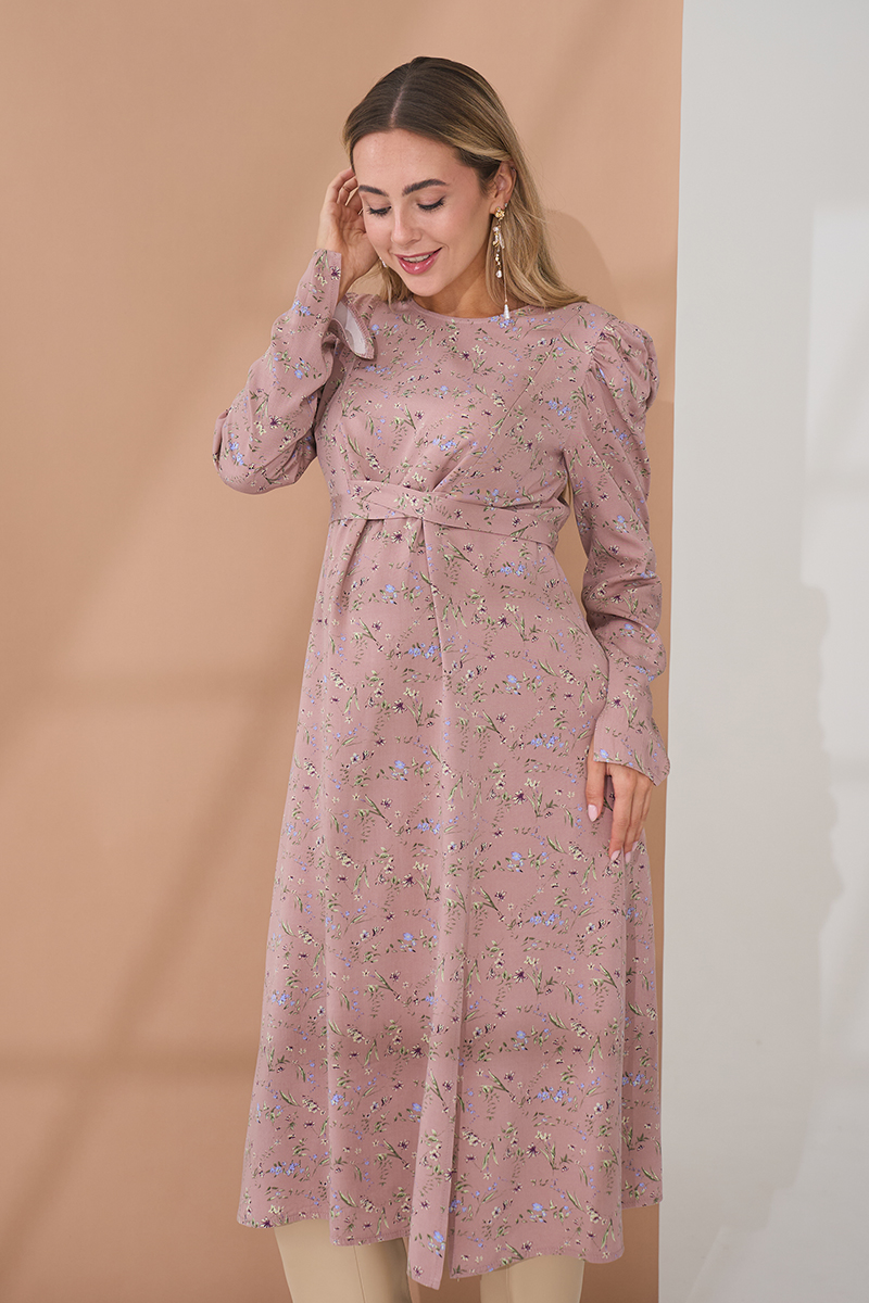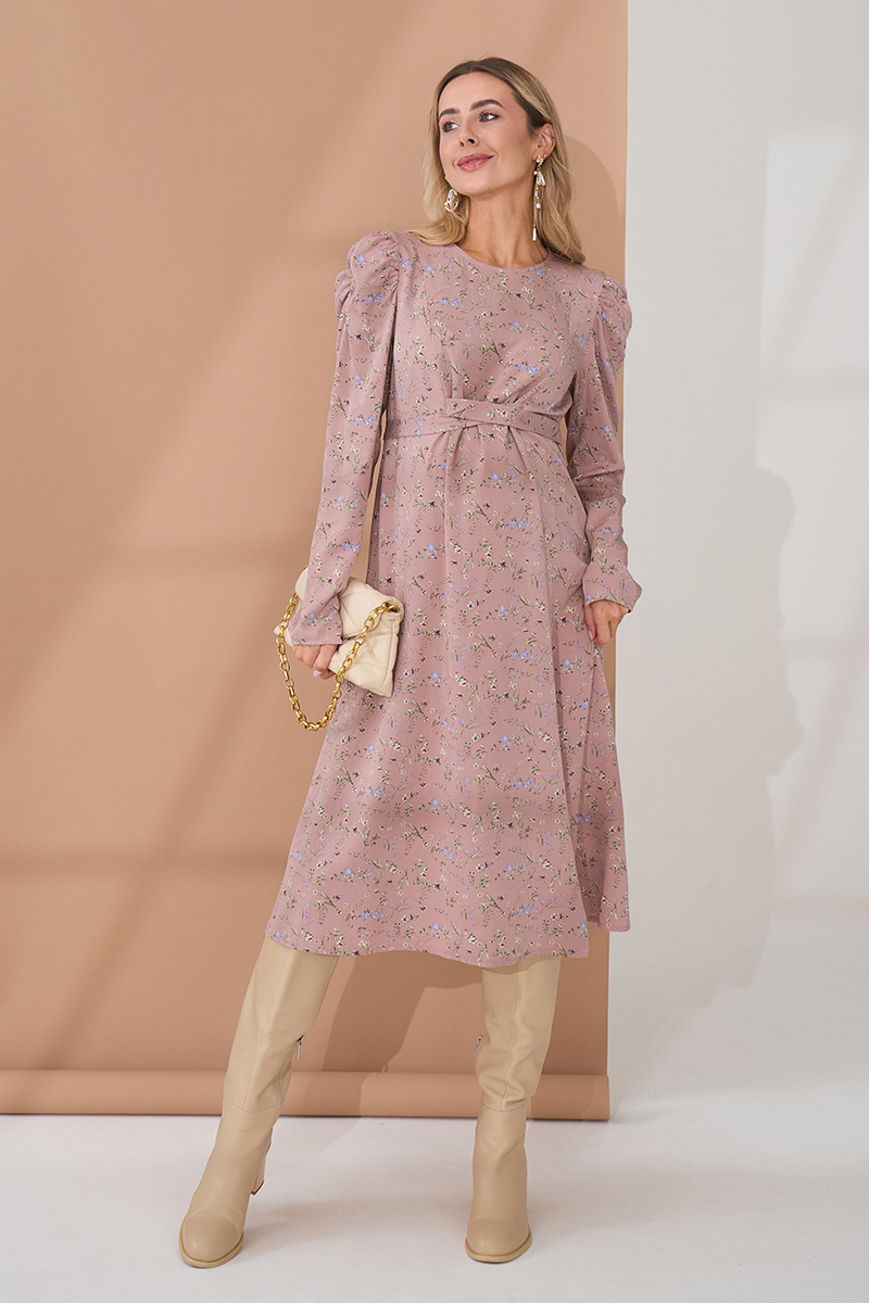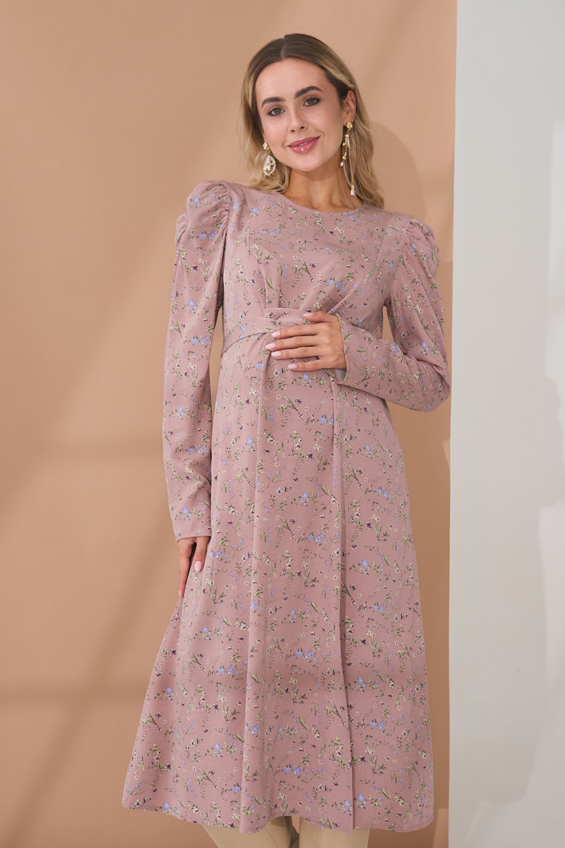 Жіночна сукня для вагітних і годуючих довжини міді зі штапеля.
