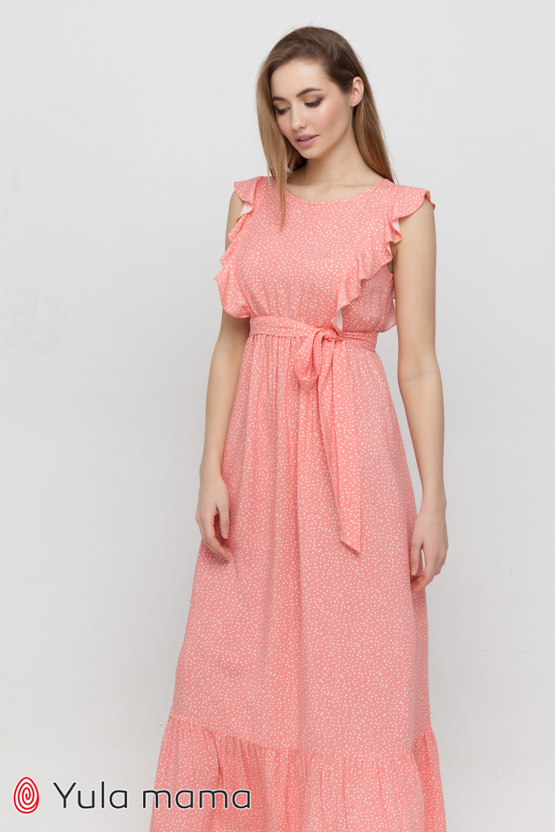 Силует: напівоблягаючий ліф з воланами та вільна спідниця з оборкою внизу, зі знімним поясом.