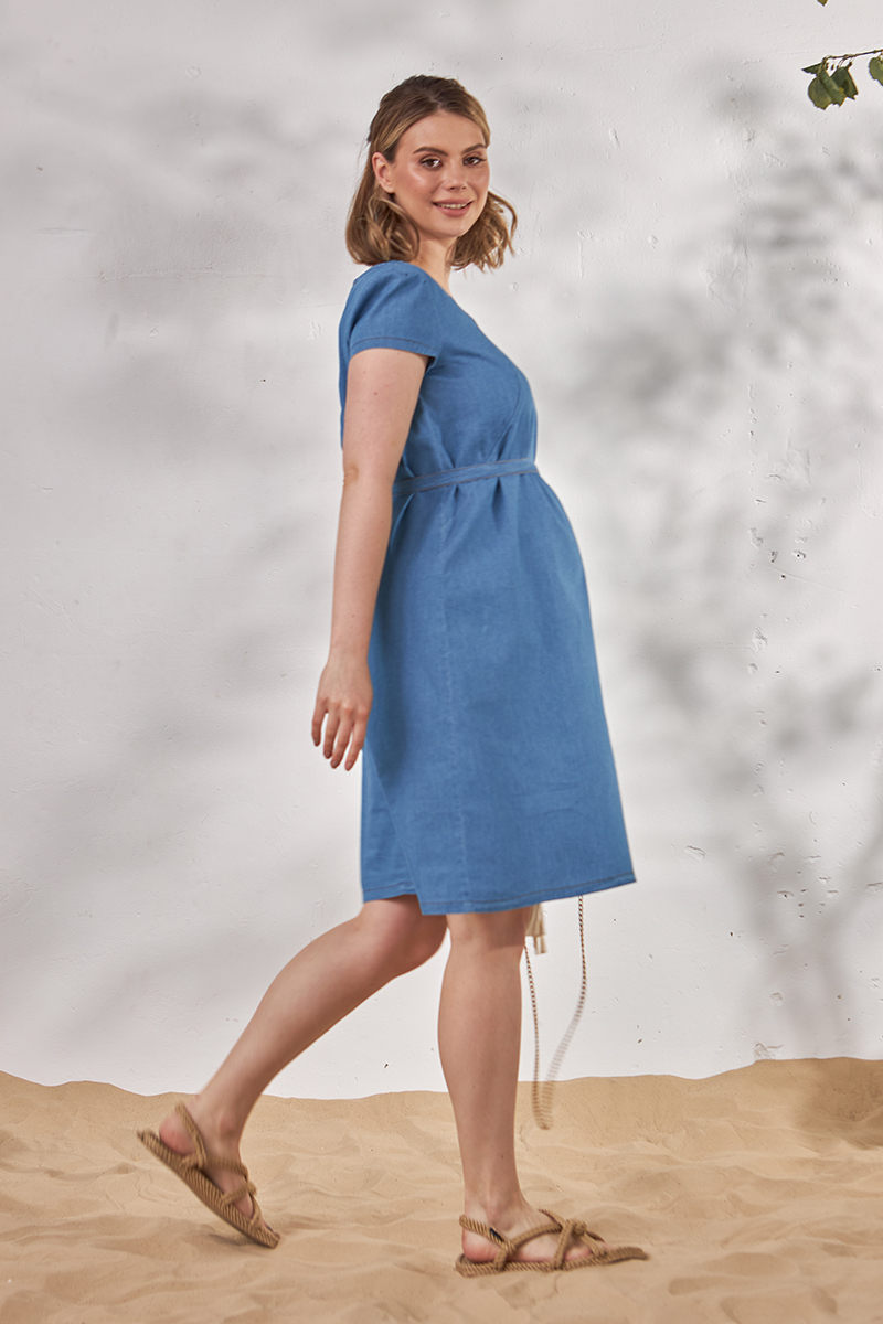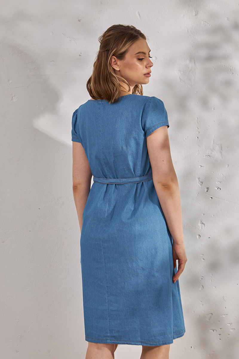 Силует: А-подібний силует з напівоблягаючим верхом і вільним низом, зі знімним поясом.