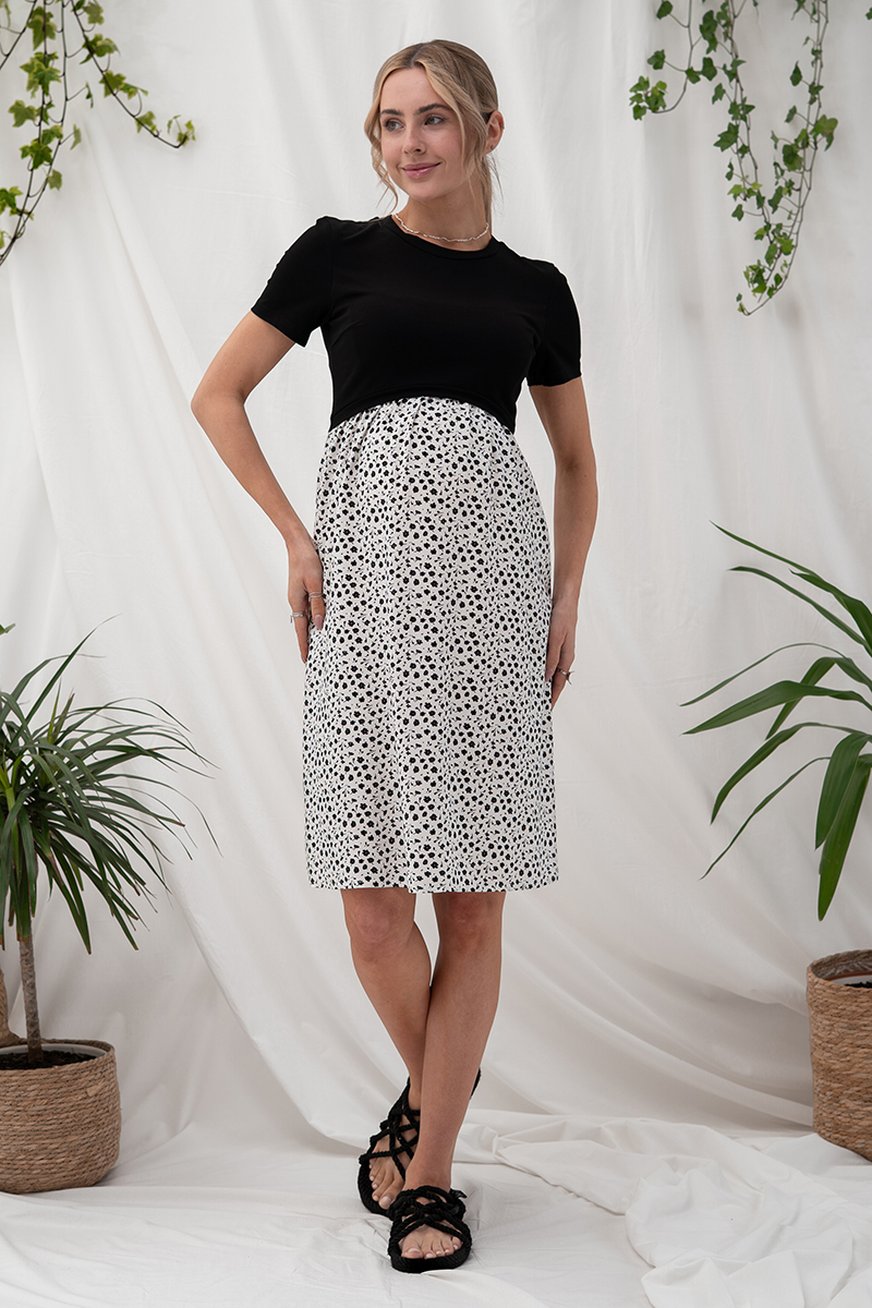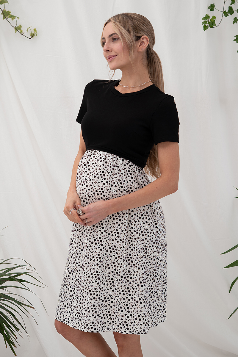 Сукня для вагітних та годуючих з трикотажним ліфом та легкою спідницею.