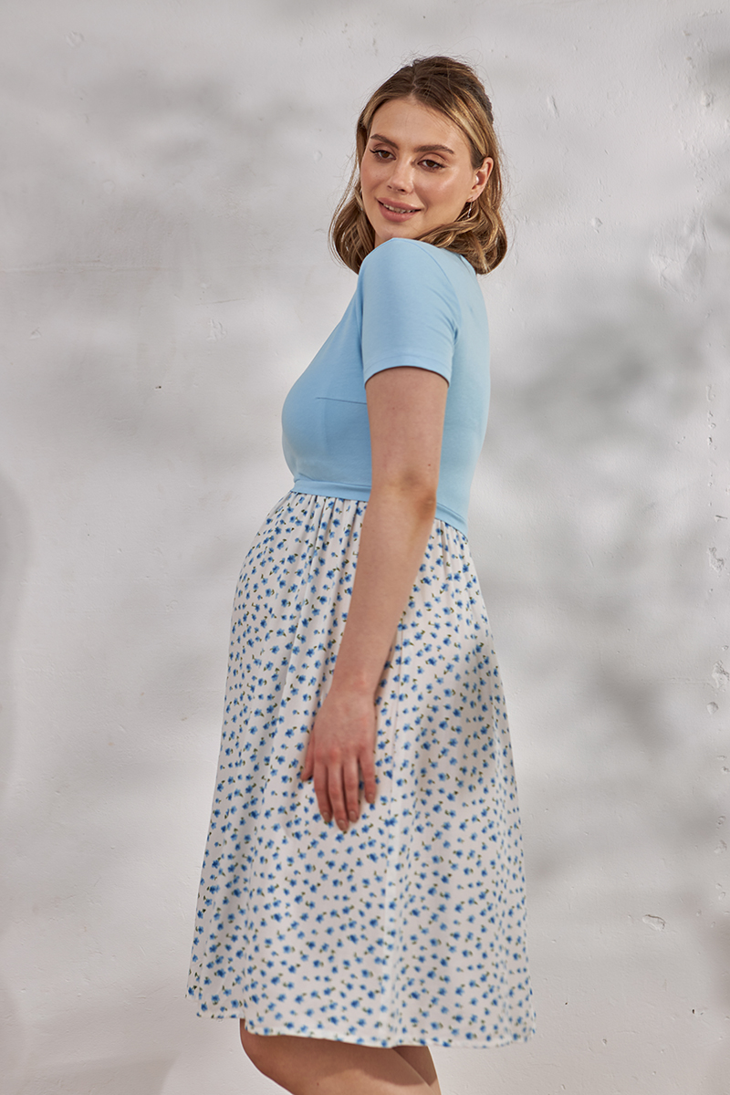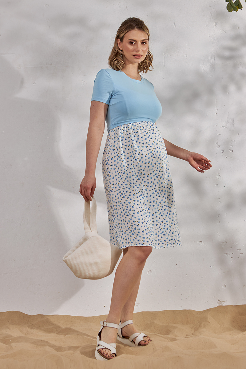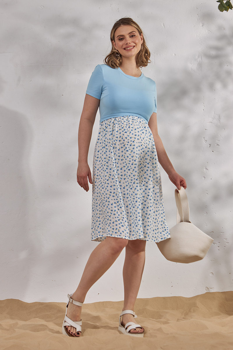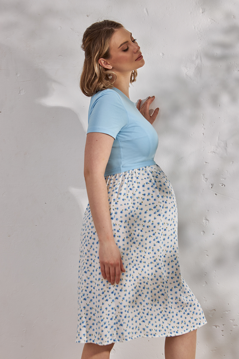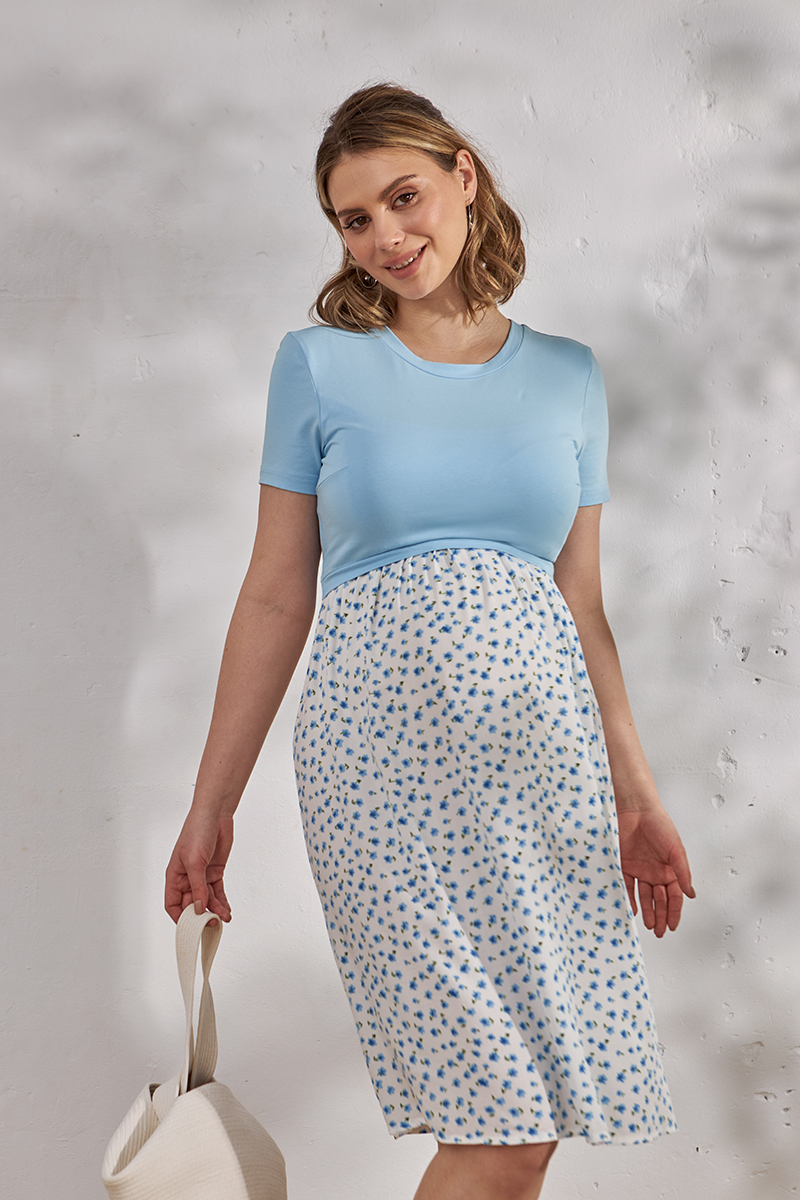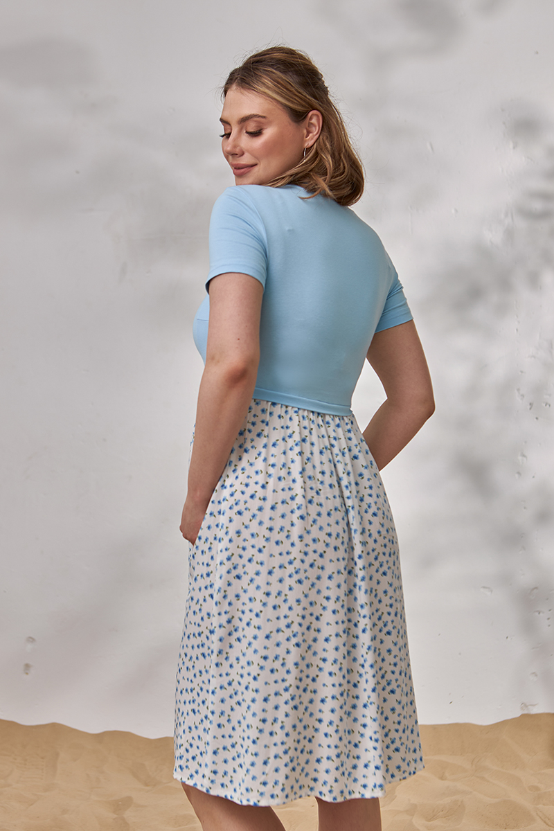 Сукня для вагітних та годуючих з трикотажним ліфом та легкою спідницею.