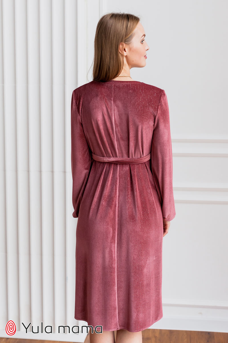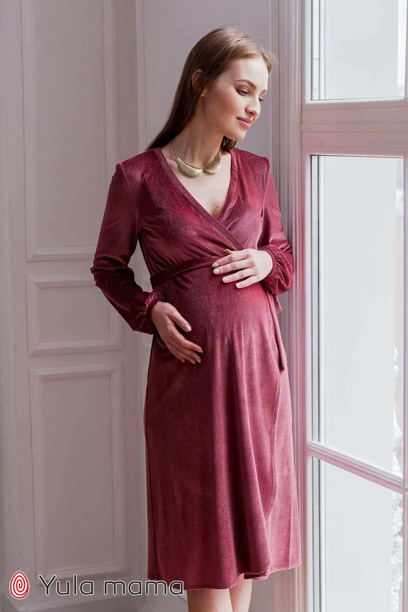 Ошатне плаття на запа́х для вагітних і годуючих з вельвету з люрексом.