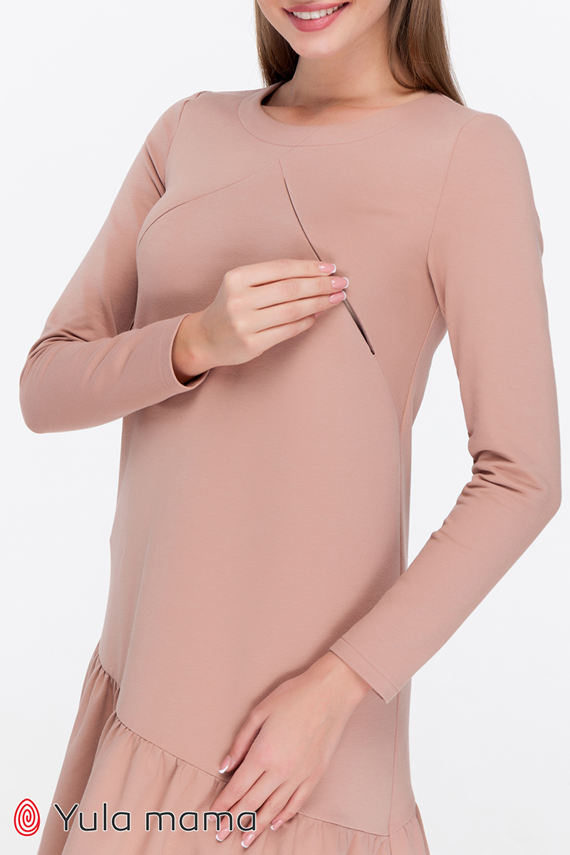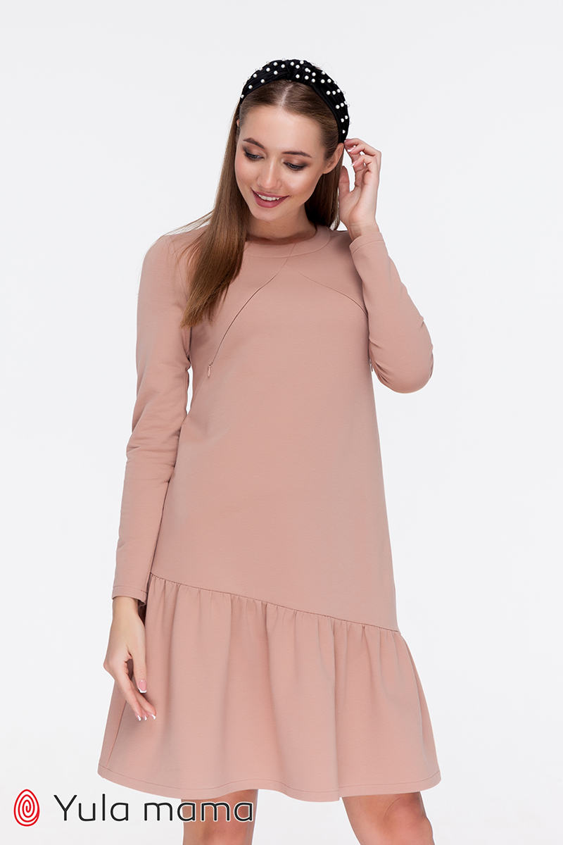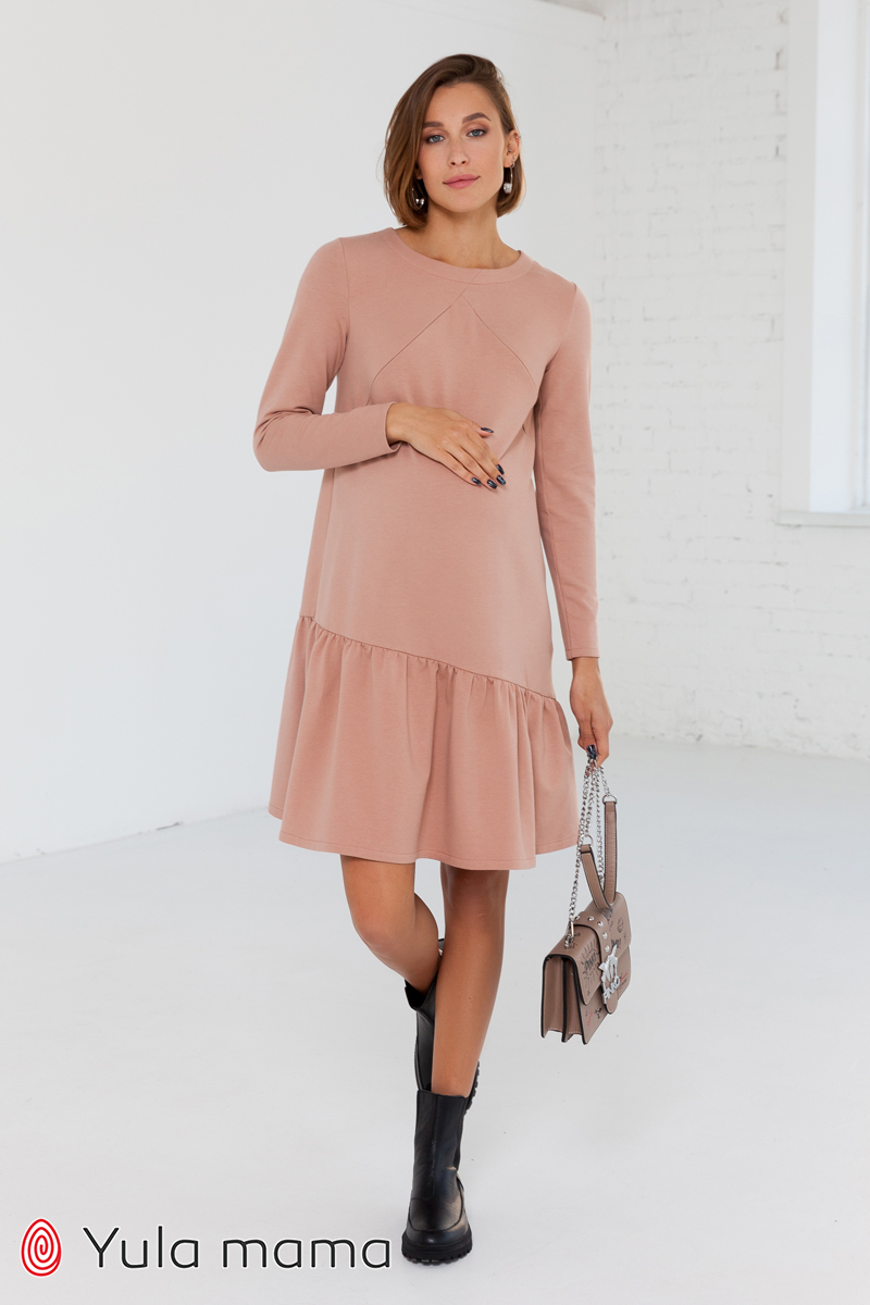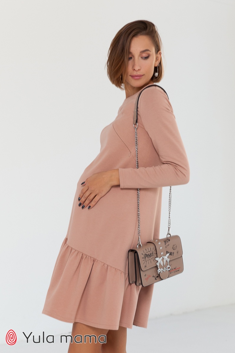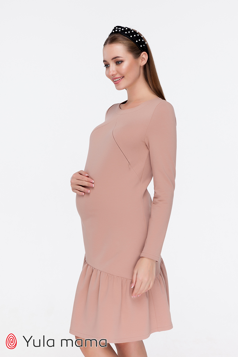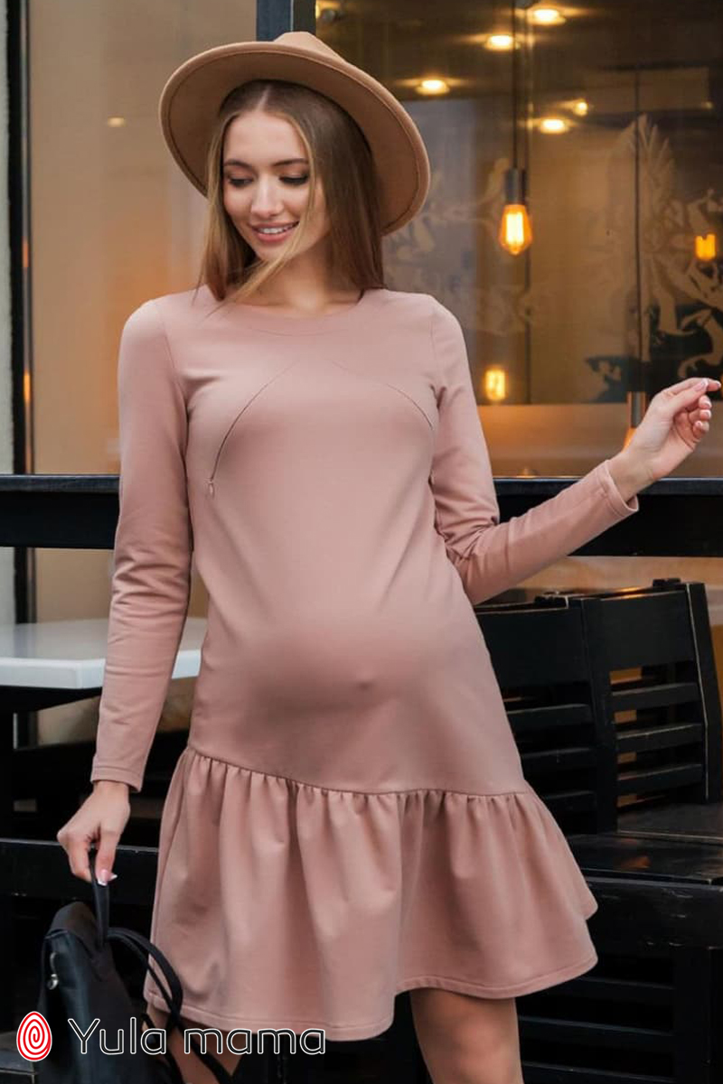 Сукня для вагітних та годуючих з оборкою з теплого трикотажу з начісом.