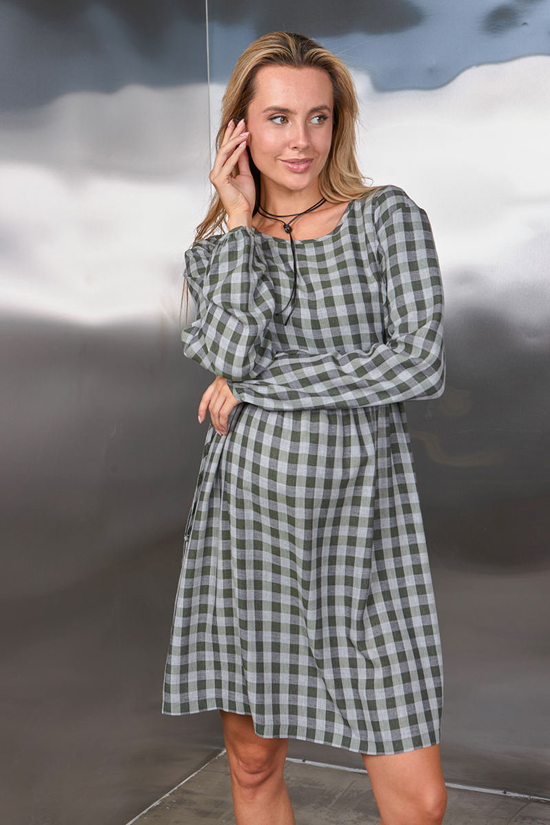 Сукня в клітку для вагітних та годуючих з плательної віскози.