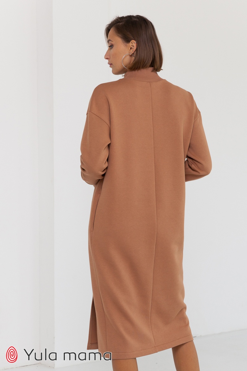 Тепла стильна сукня для вагітних та годуючих із щільного трикотажу з начосом.