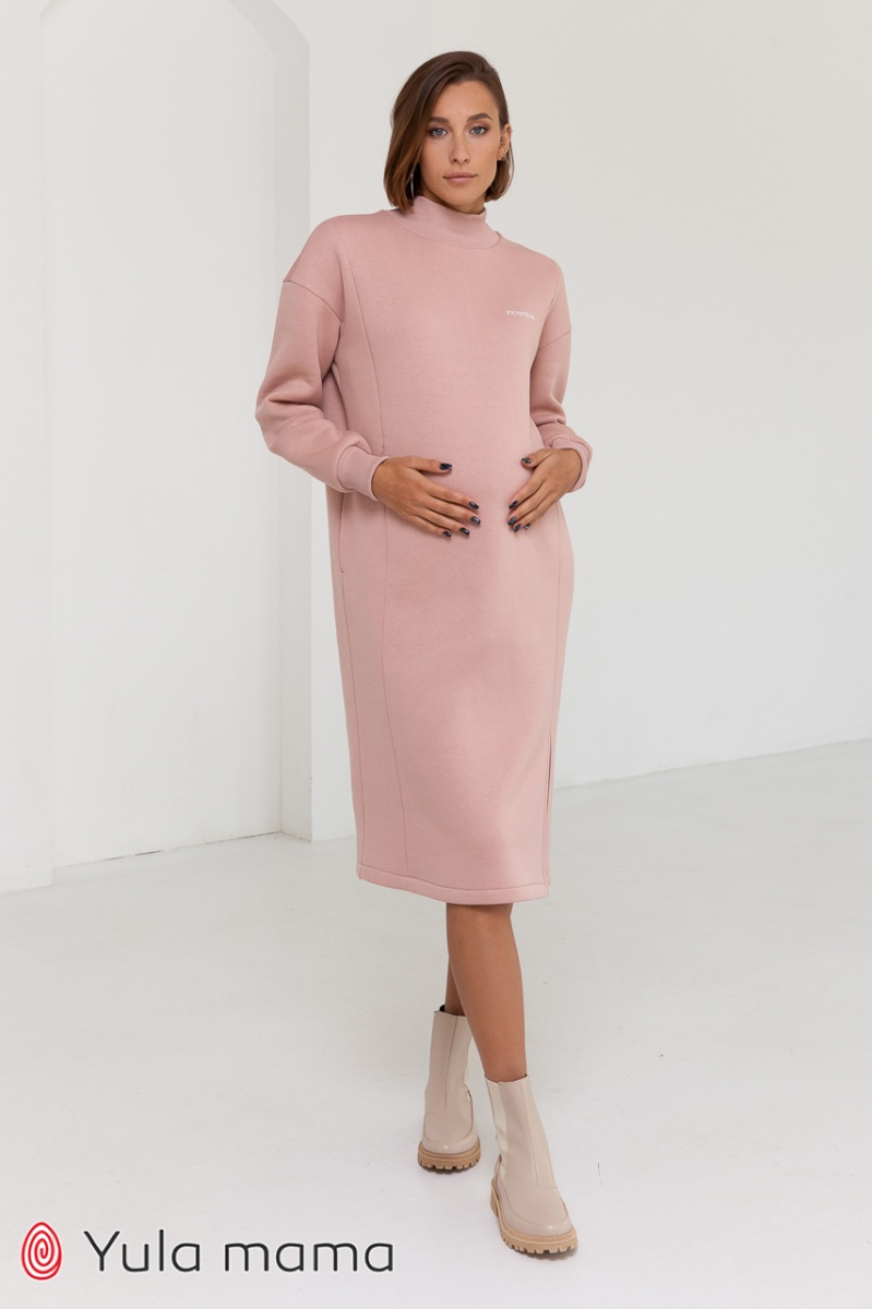 Тепла стильна сукня для вагітних та годуючих із щільного трикотажу з начісом.