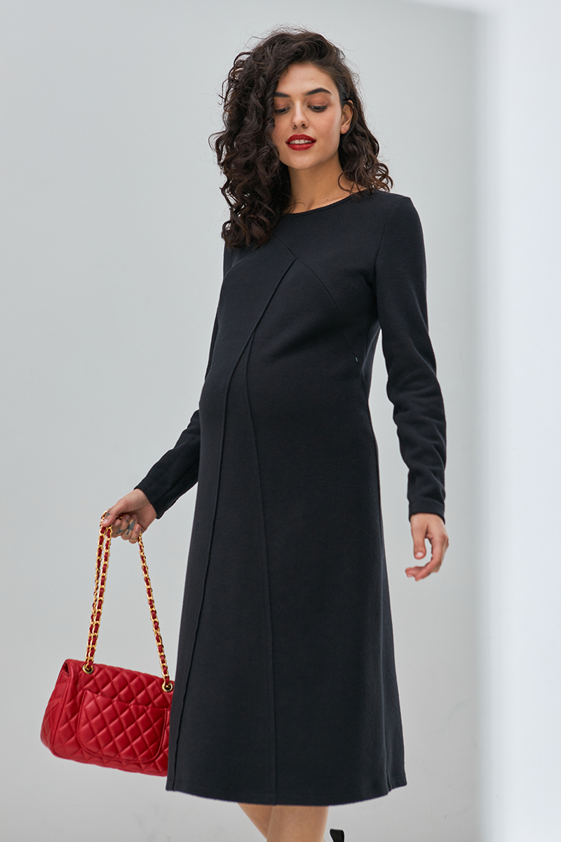 Жіноча сукня міді для вагітних та годуючих із теплого трикотажу.