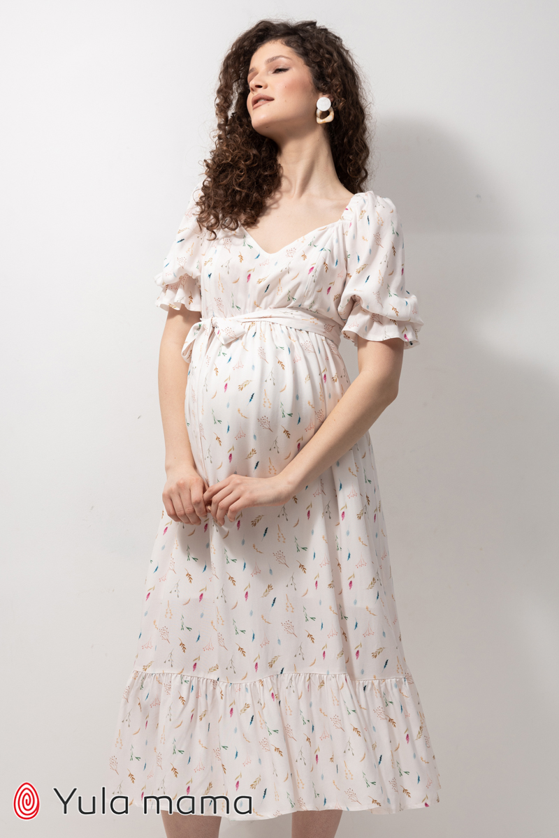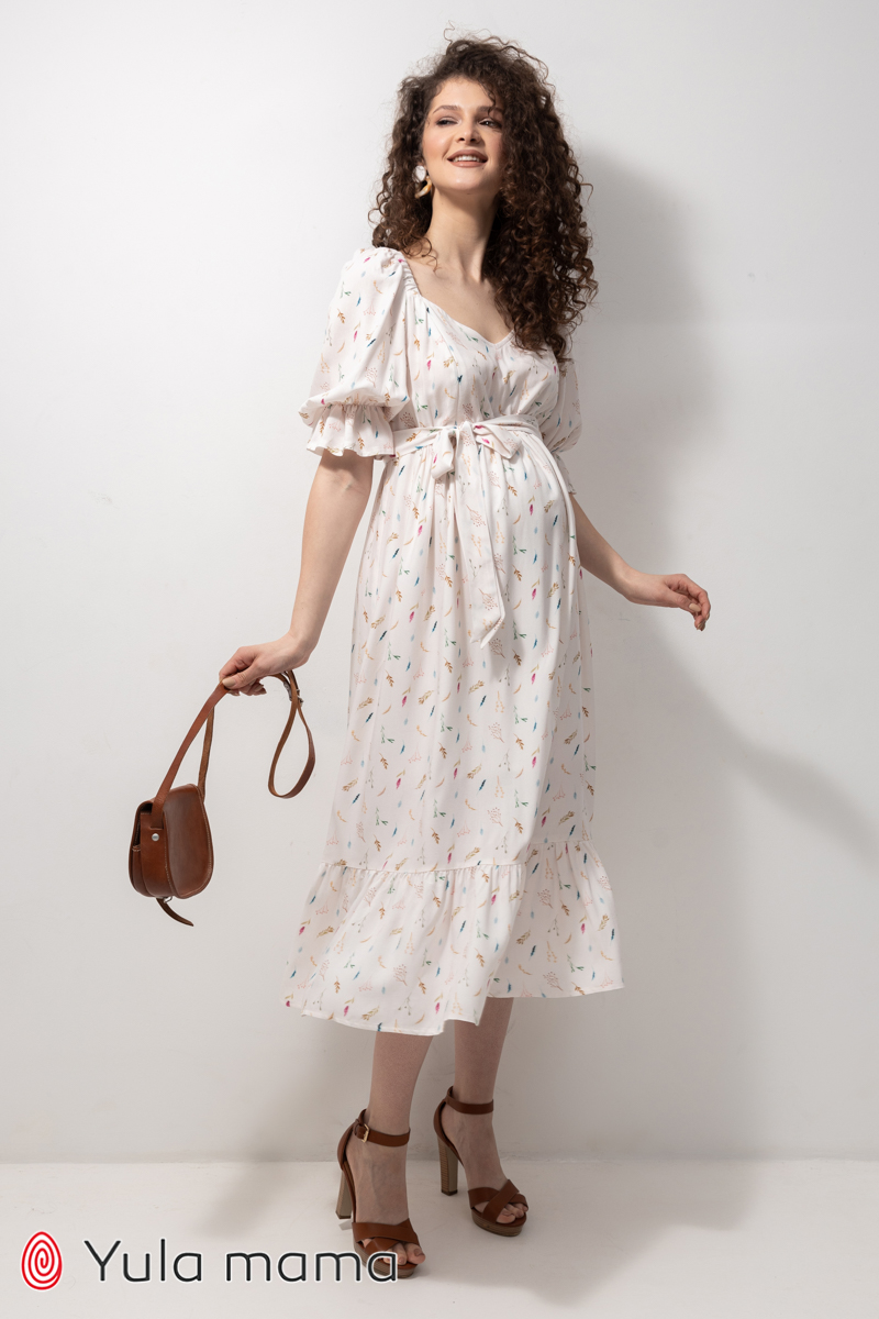 Сукня для вагітних та годуючих з акцентними рукавами-буфами.