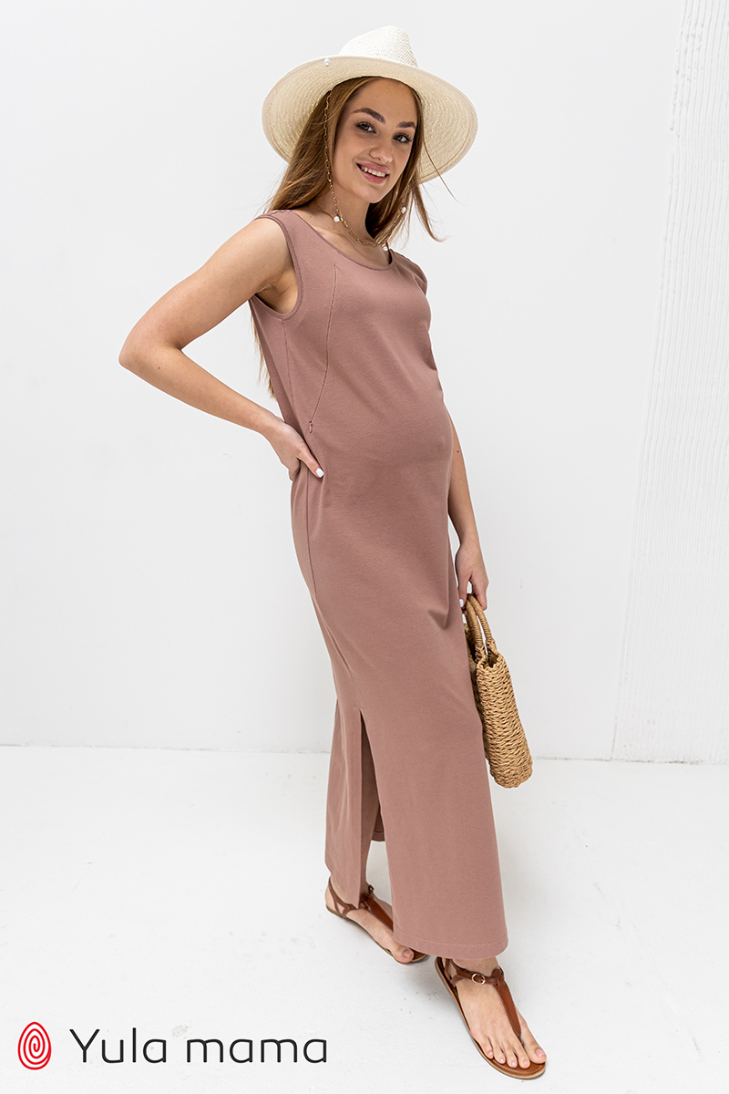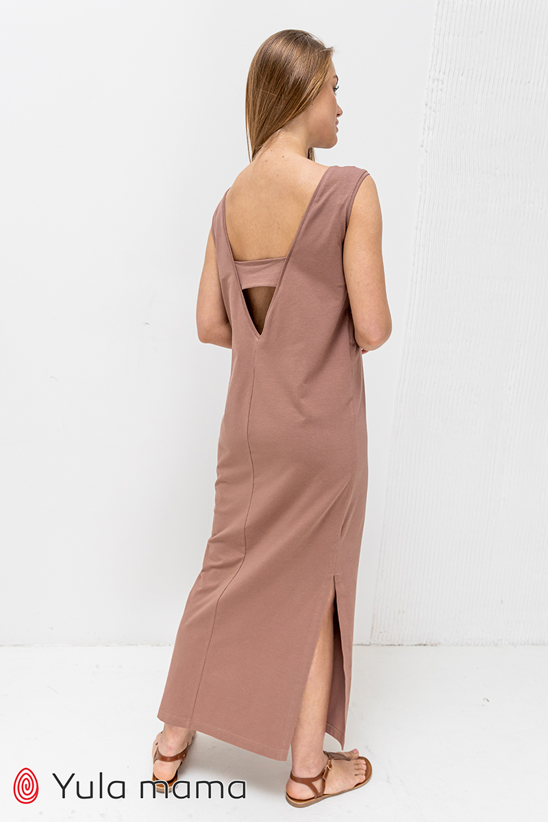 Сукня-майка для вагітних та годуючих з трикотажу з V-подібним вирізом по спинці.