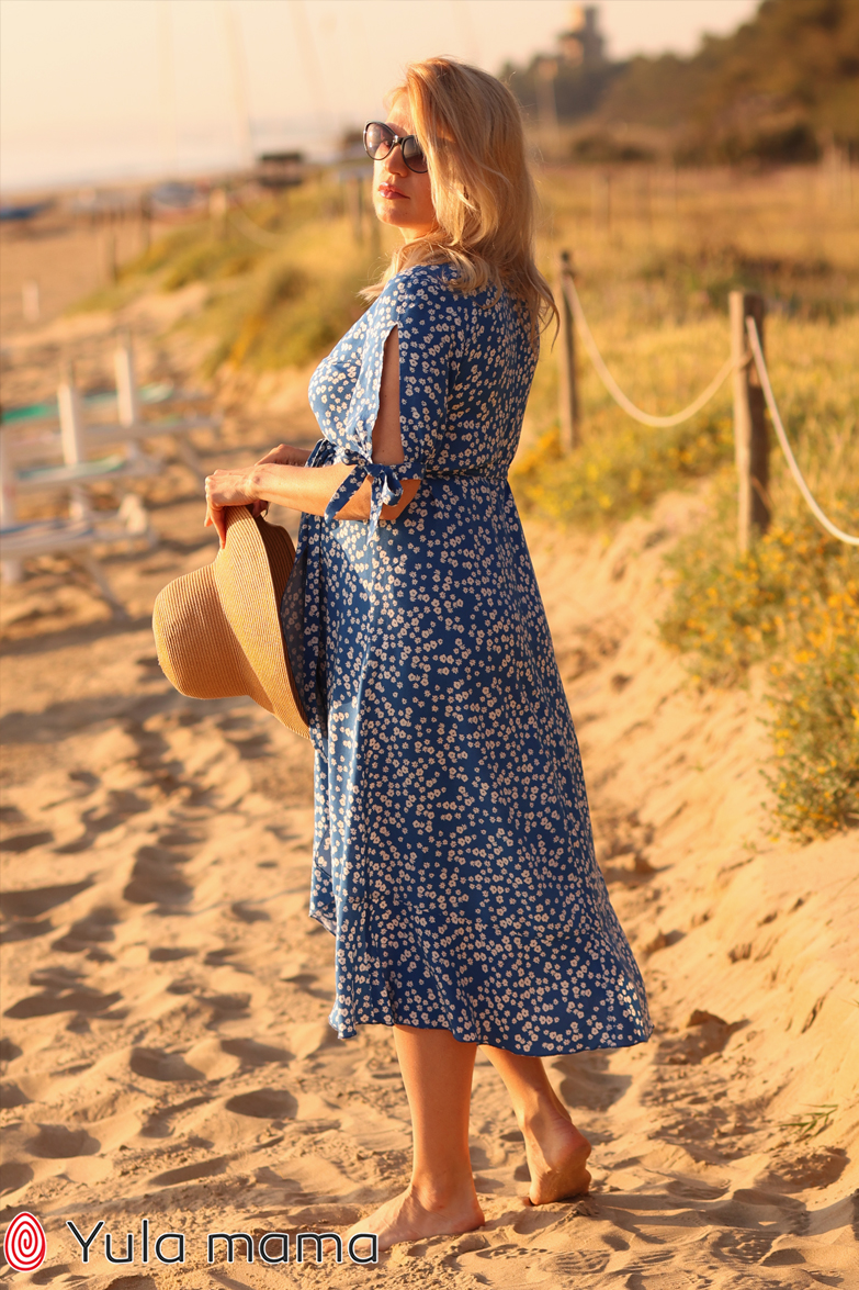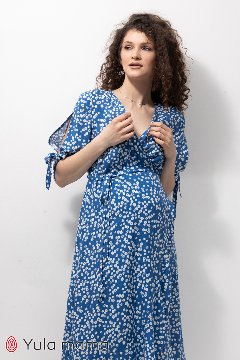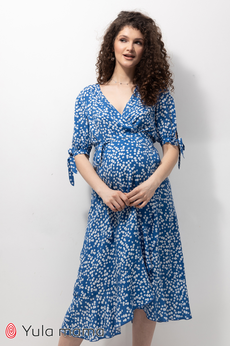 Жіноча сукня на запах з воланами для вагітних та годуючих зі штапеля.