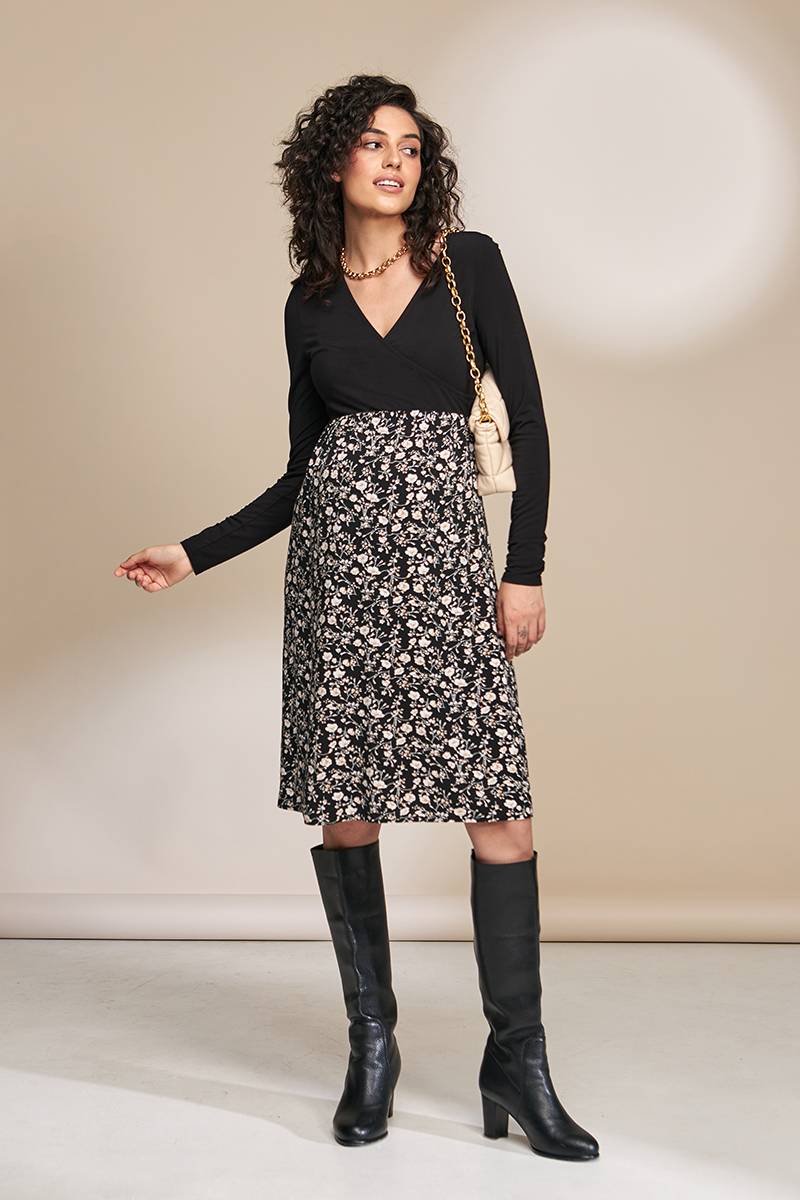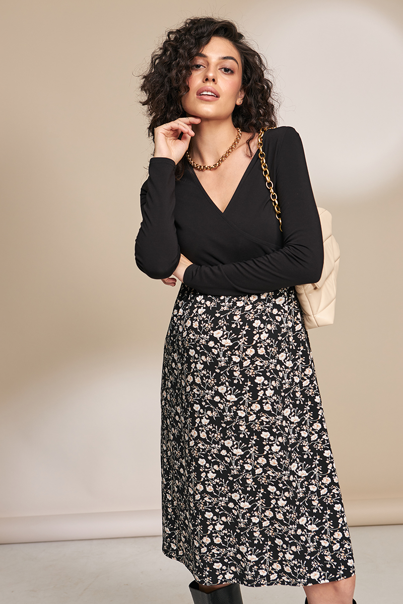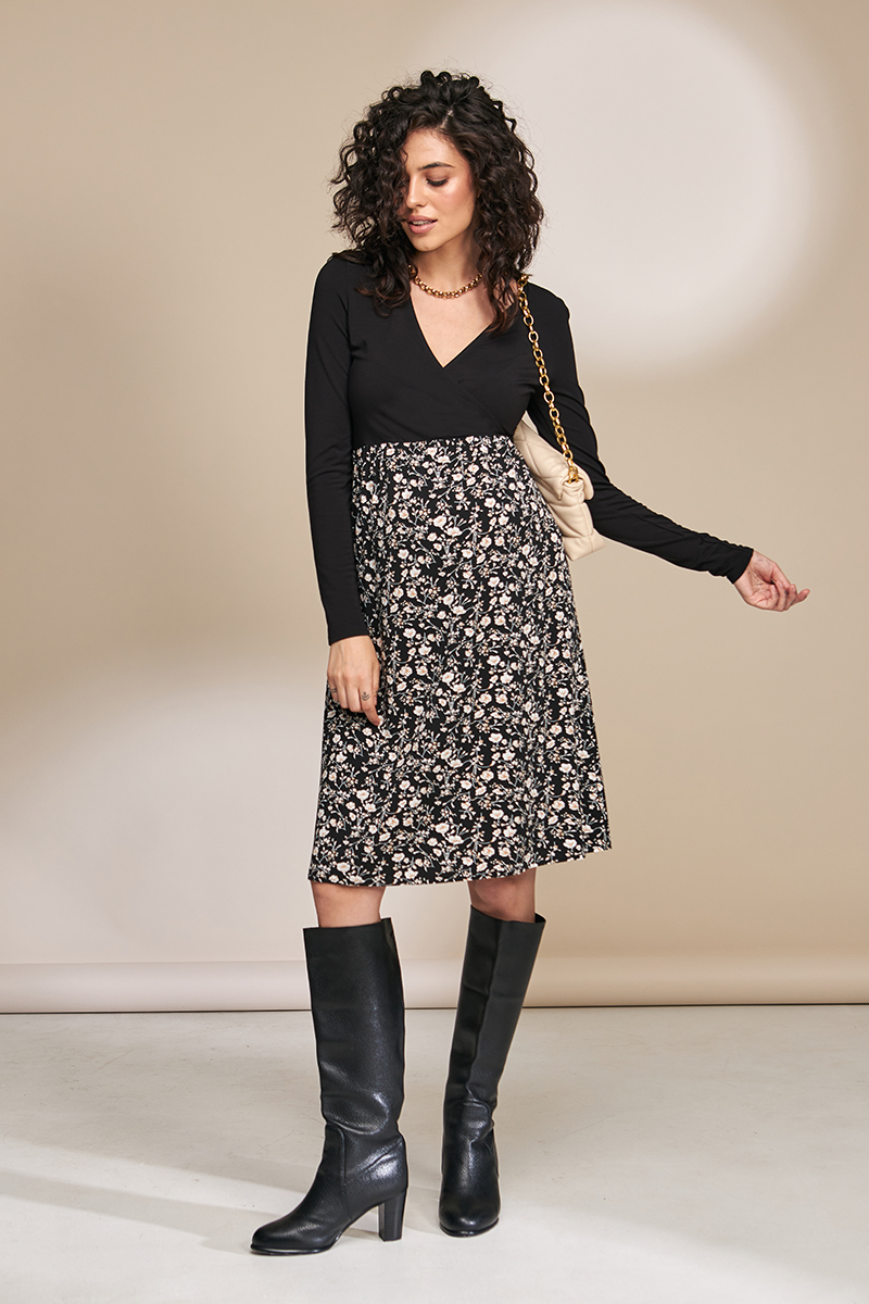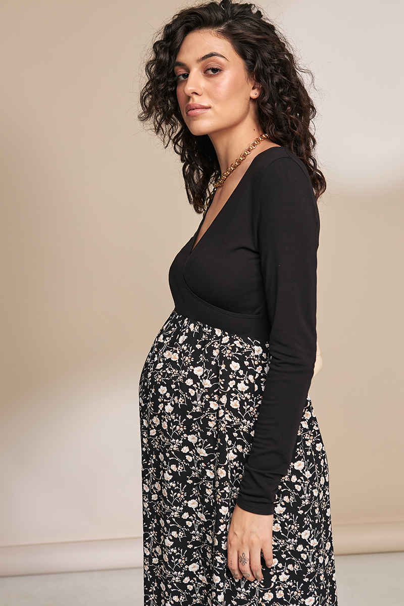 Святкове плаття для вагітних і годуючих з трикотажним ліфом і спідницею із щільного штапелю.