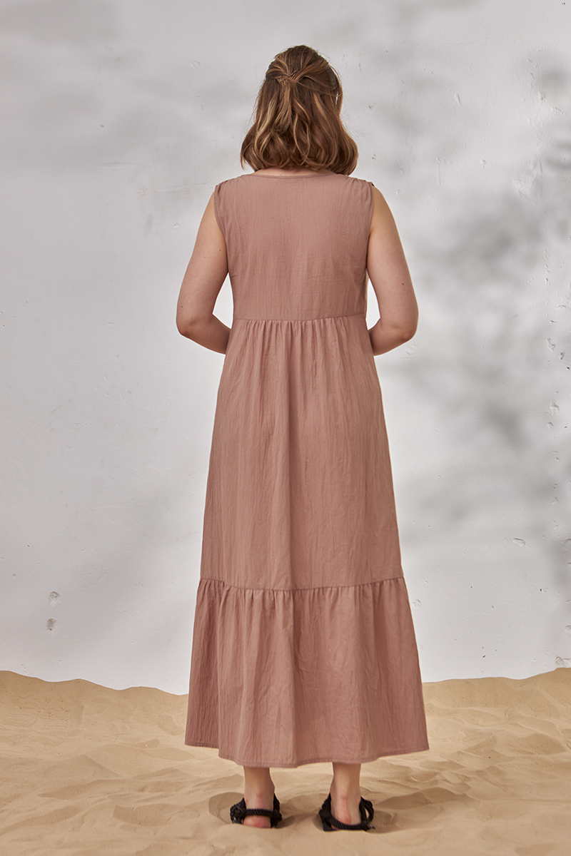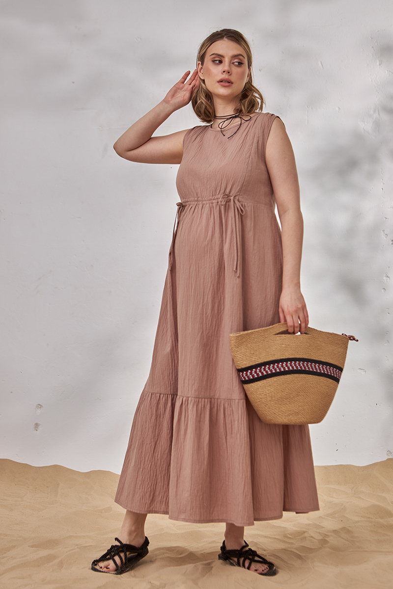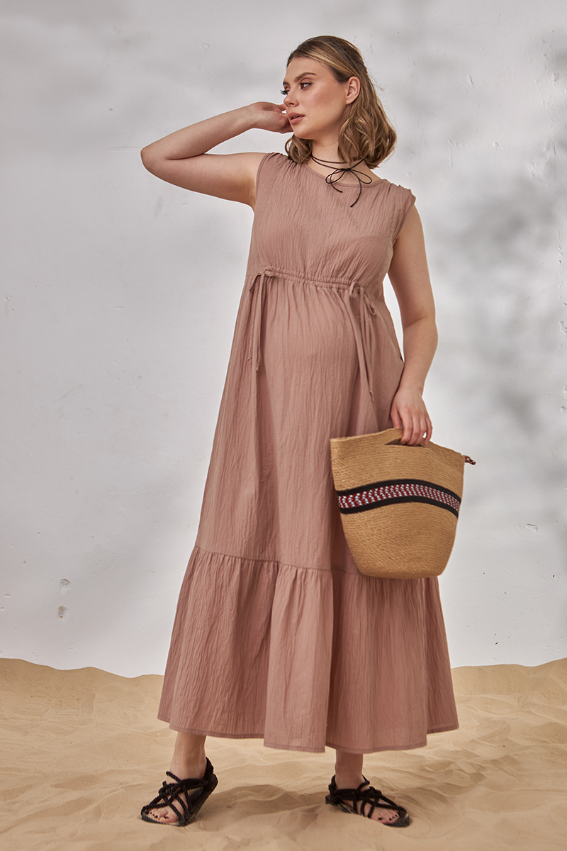 Довге плаття для вагітних та годуючих із жатої тканини.