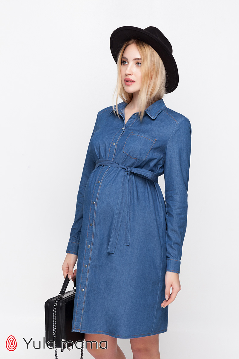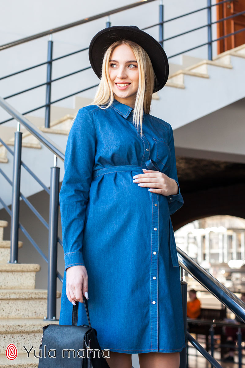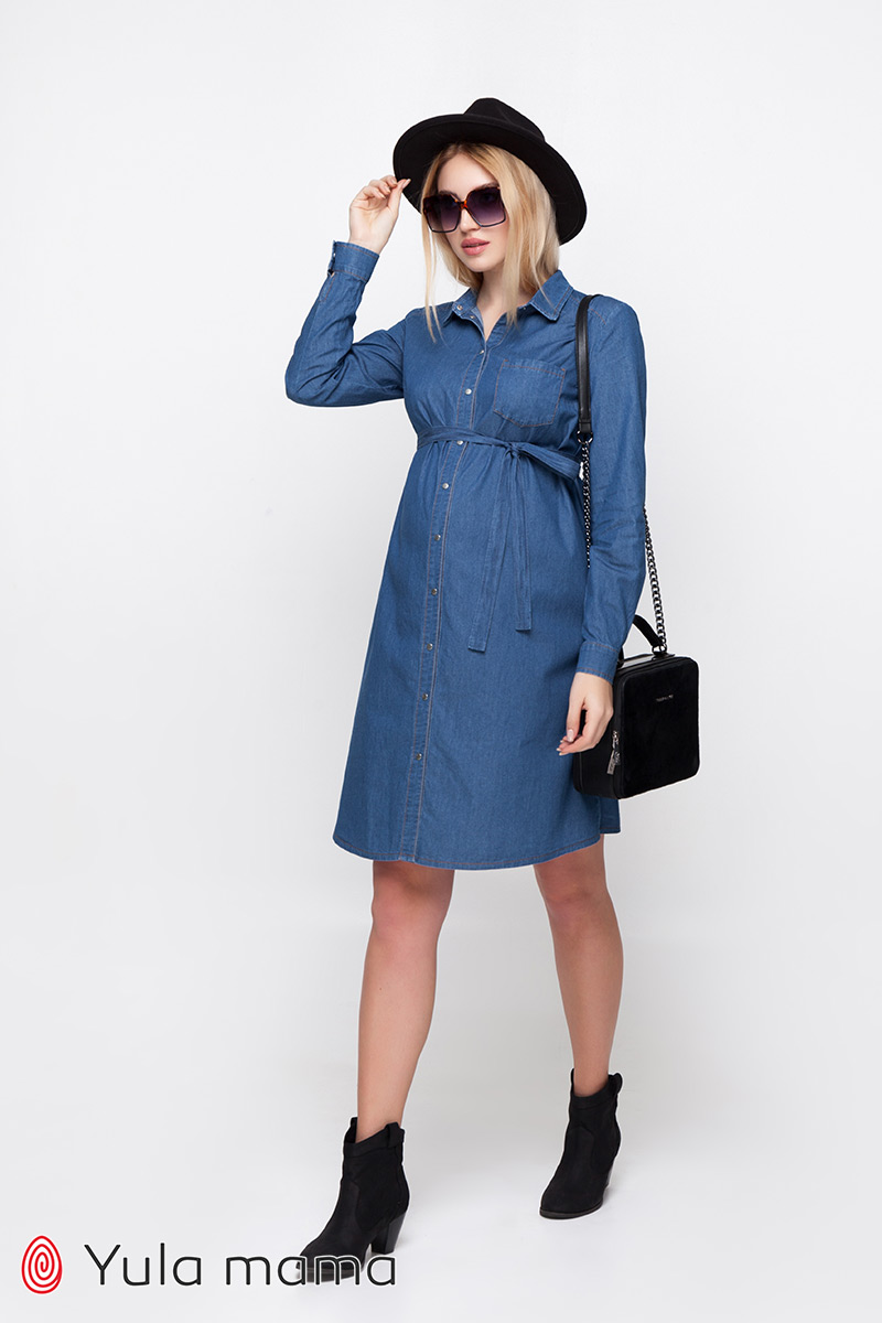 Плаття-сорочка для вагітних та годуючих з тонкого джинсу.
