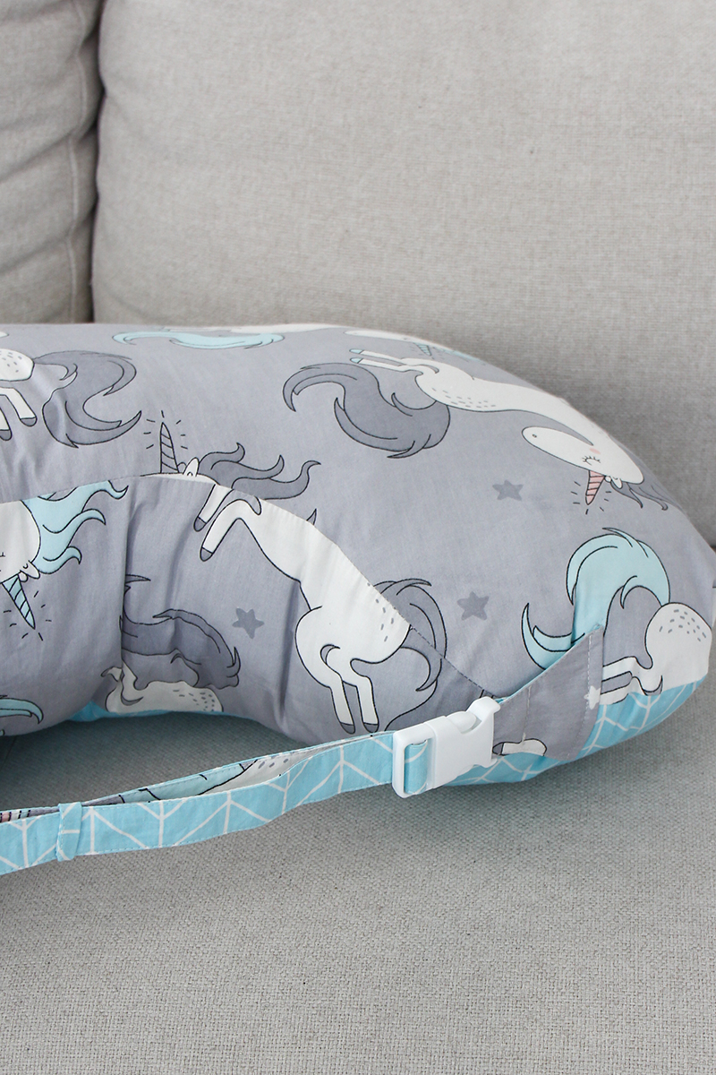 - подушка надійно кріпиться на мамі завдяки плоскому ремінцю з надійною застібкою фастекс (що забезпечує безпеку).
