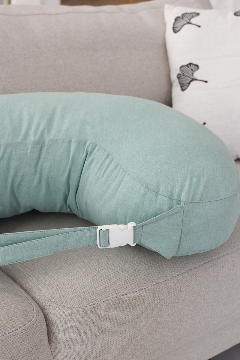 - подушка надійно кріпиться на мамі завдяки плоскому ремінцю з надійною застібкою фастекс (що забезпечує безпеку).