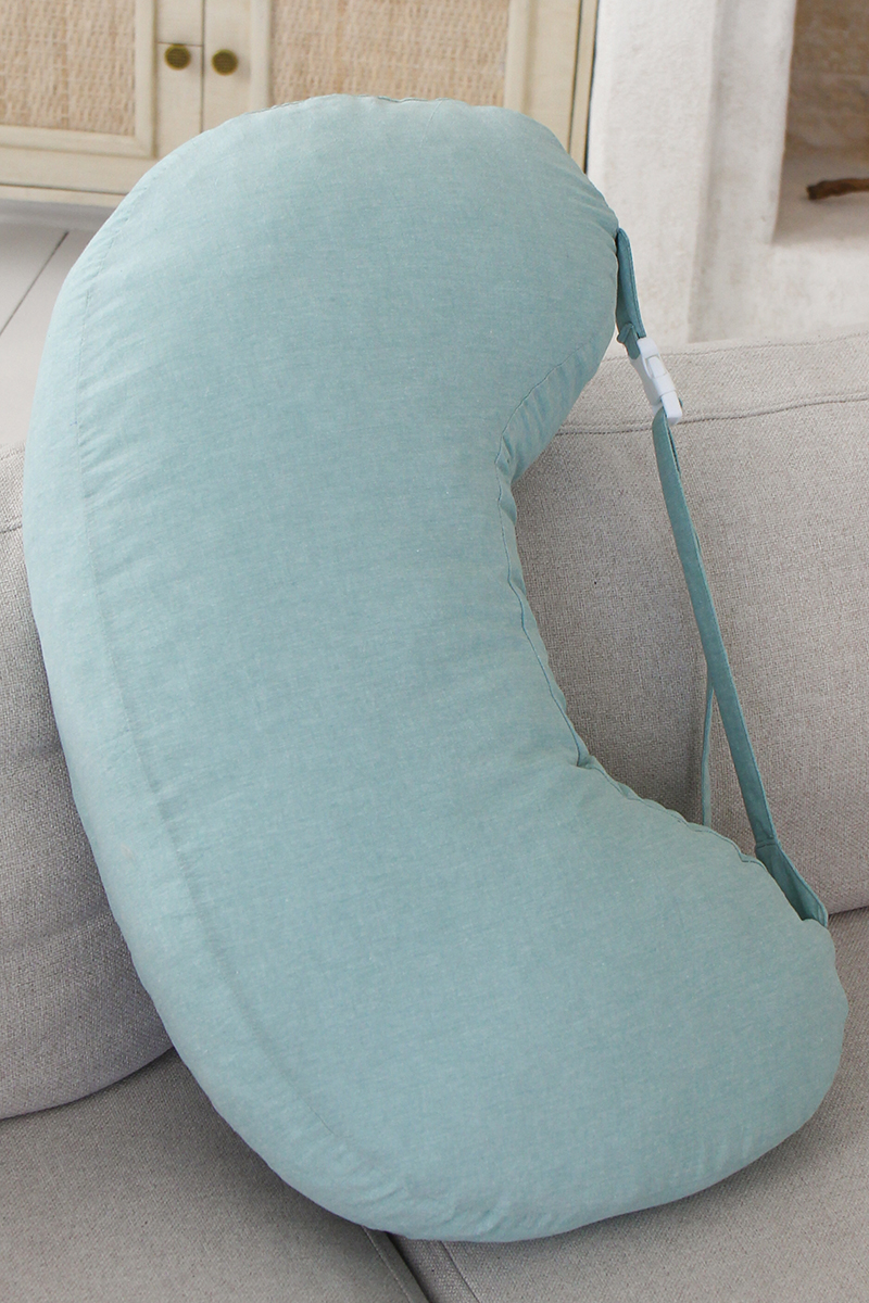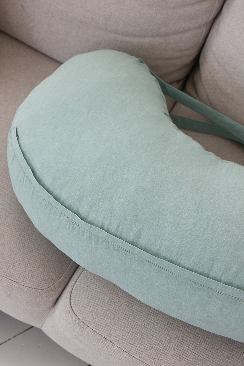 Пройшовши на особистому досвіді материнства незручність більшості стандартних подушок, наша фундаторка внесла доробки, які допомагають розвантажити спину і дозволяють звільнити руки молодій мамі: