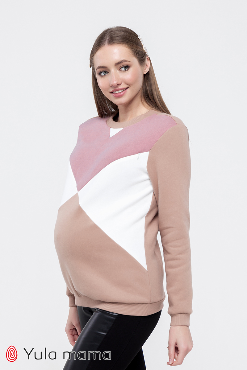 Стильний світшот з начосом для вагітних та годуючих у стилі color-block.